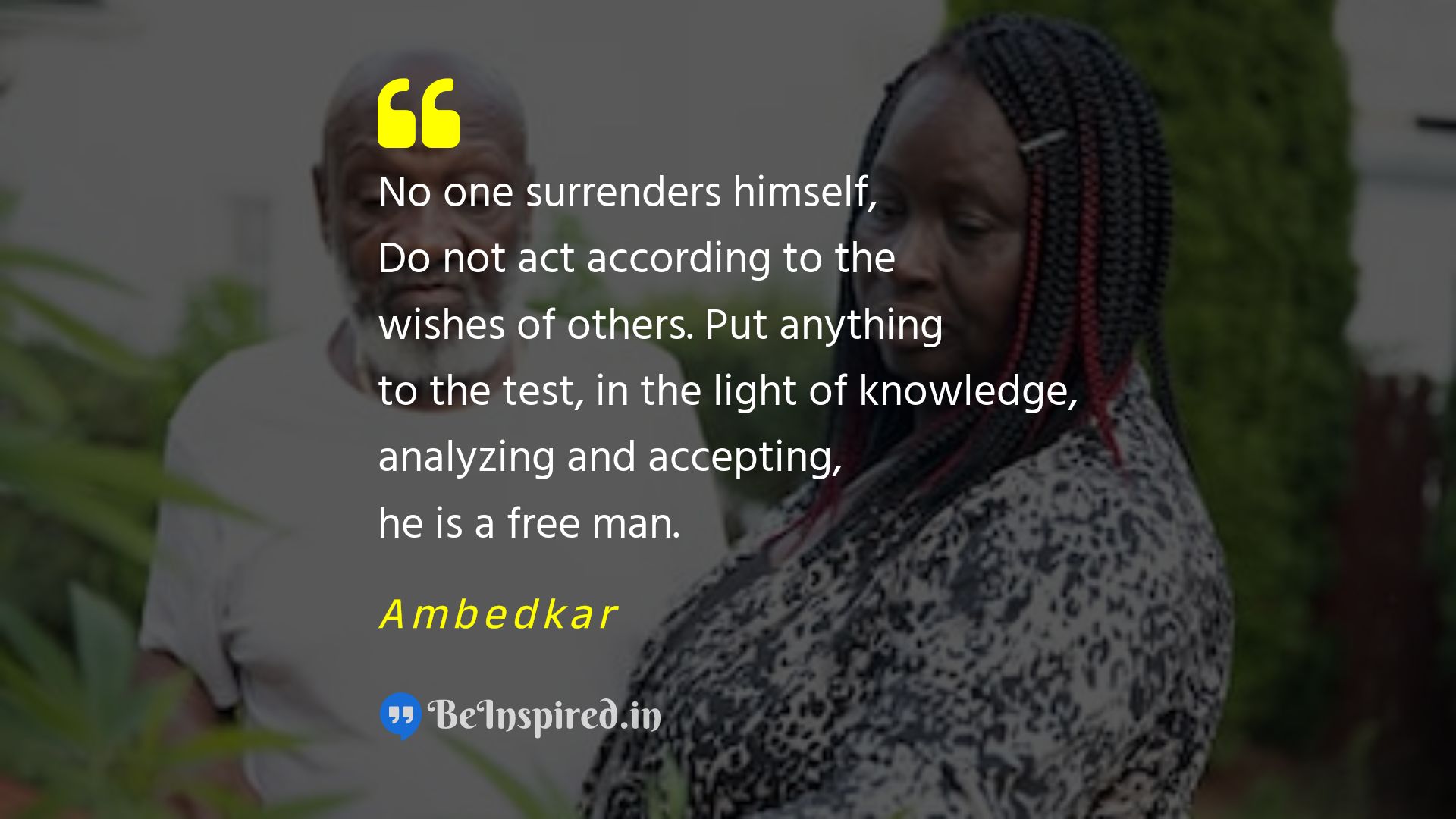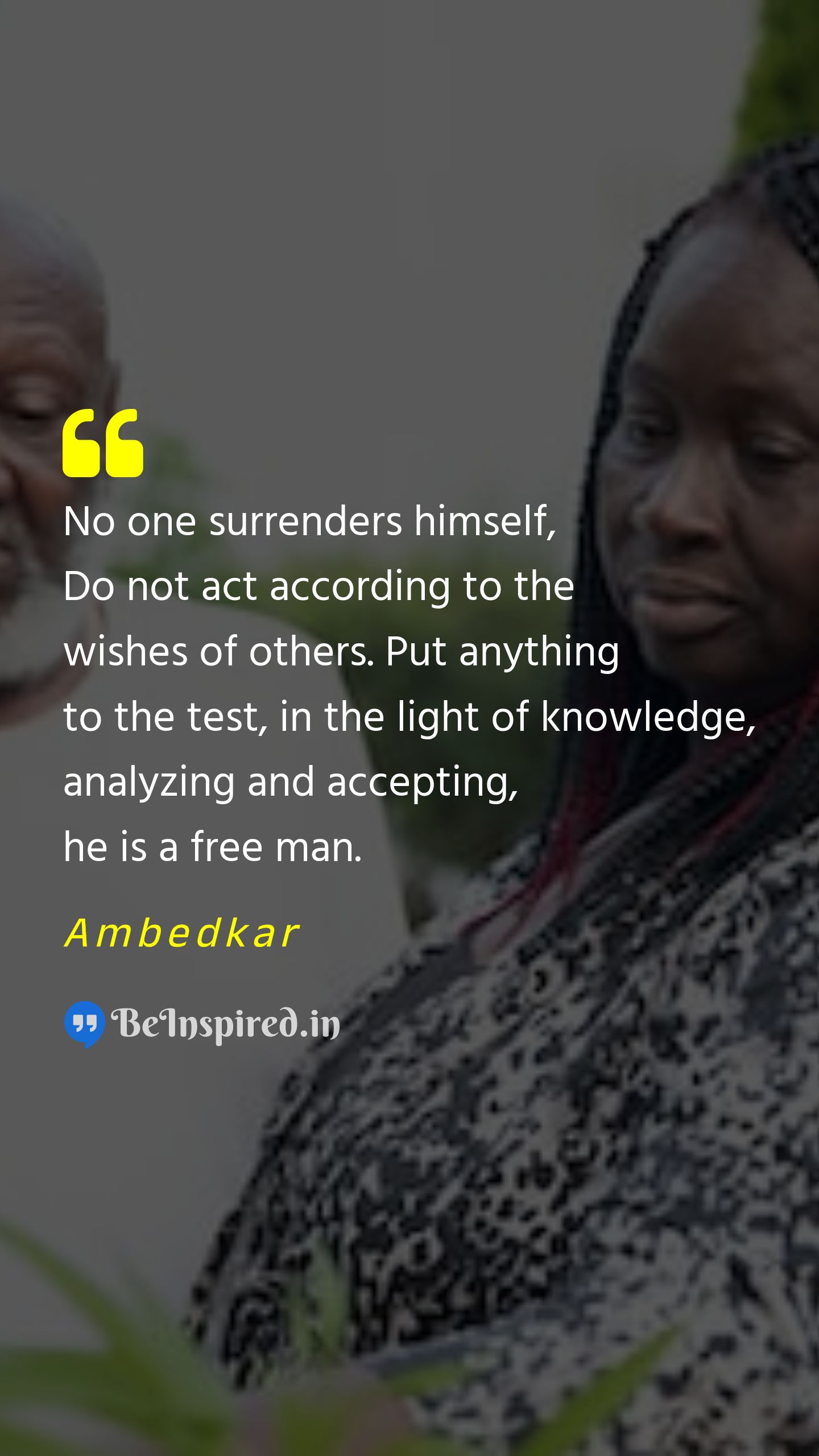 No one surrenders himself, Do not act according to the wishes of others. Put anything to the test, in the light of knowledge, analyzing and accepting, he is a free man.
