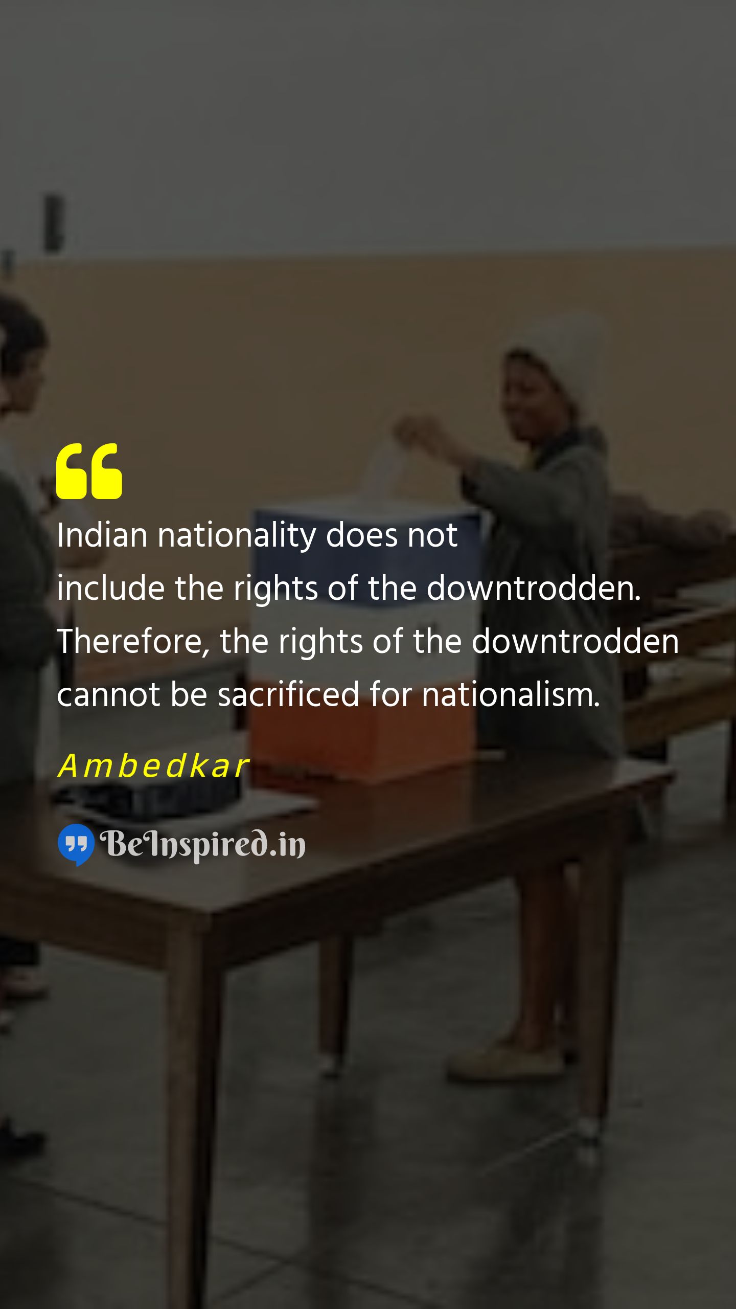 Indian nationality does not include the rights of the downtrodden. Therefore, the rights of the downtrodden cannot be sacrificed for nationalism.