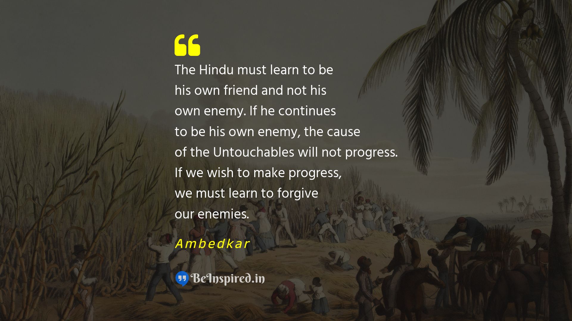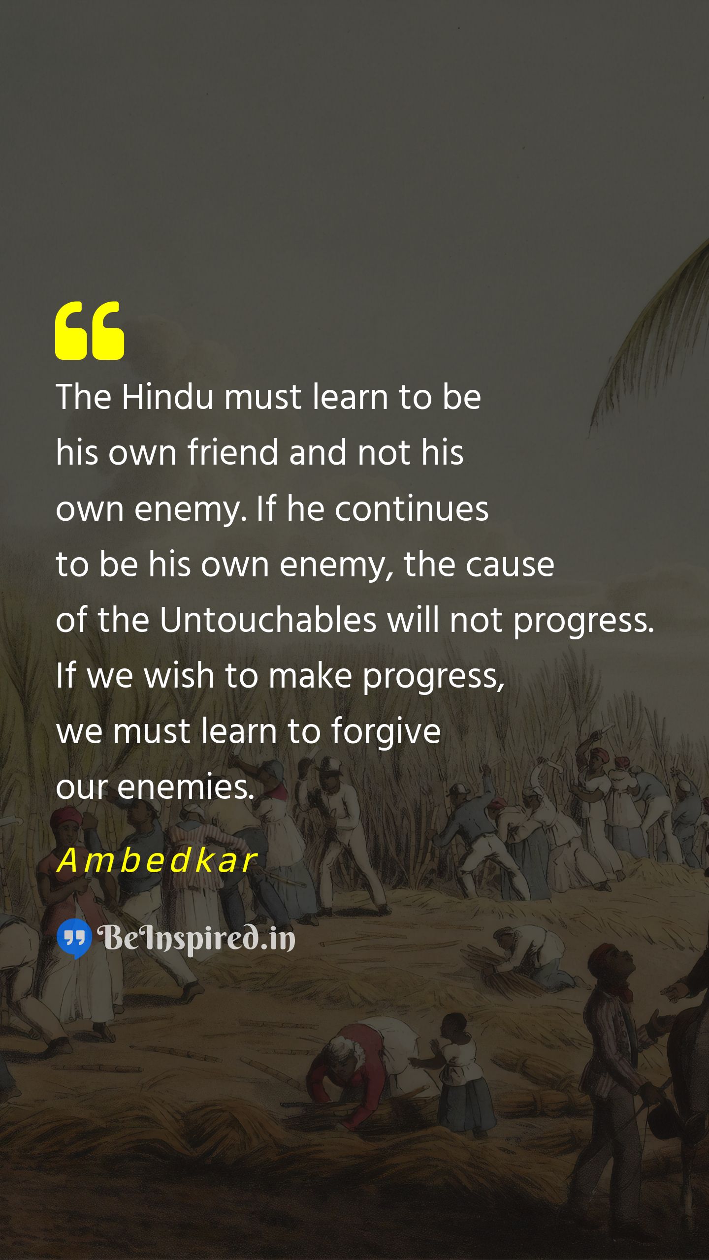 The Hindu must learn to be his own friend and not his own enemy. If he continues to be his own enemy, the cause of the Untouchables will not progress. If we wish to make progress, we must learn to forgive our enemies.