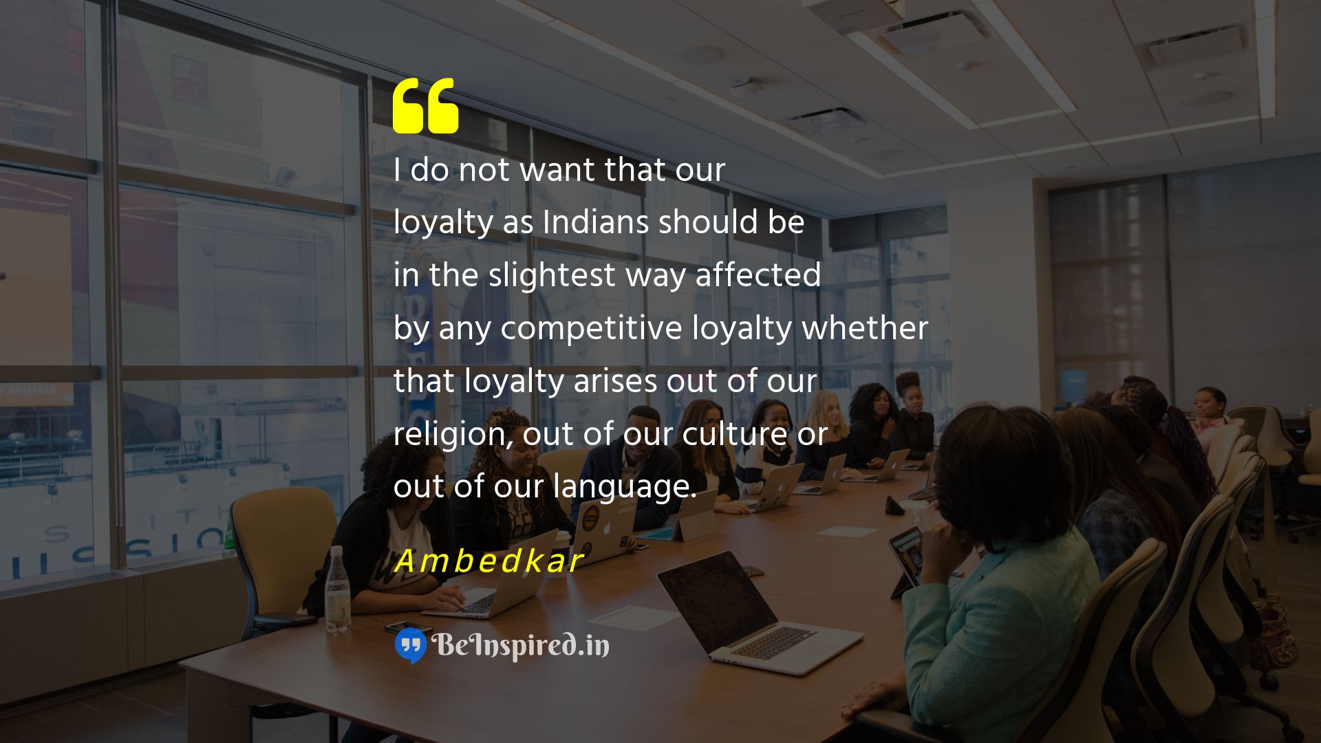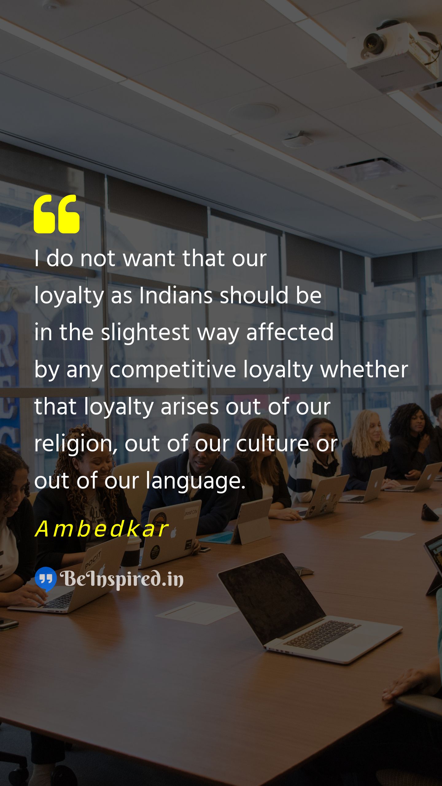 I do not want that our loyalty as Indians should be in the slightest way affected by any competitive loyalty whether that loyalty arises out of our religion, out of our culture or out of our language.