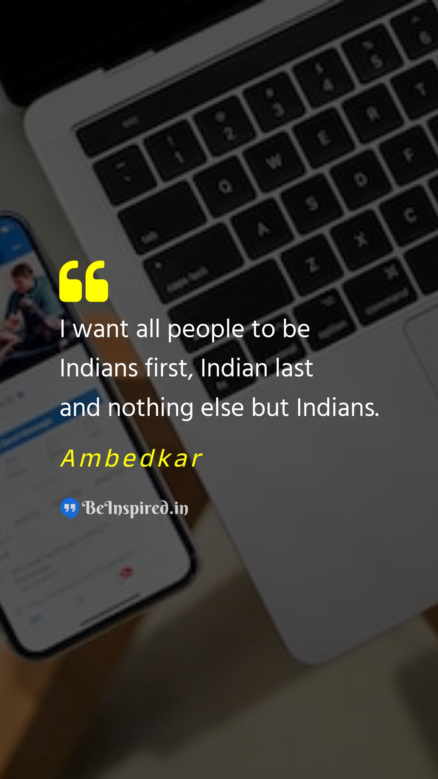 I want all people to be Indians first, Indian last and nothing else but Indians.
