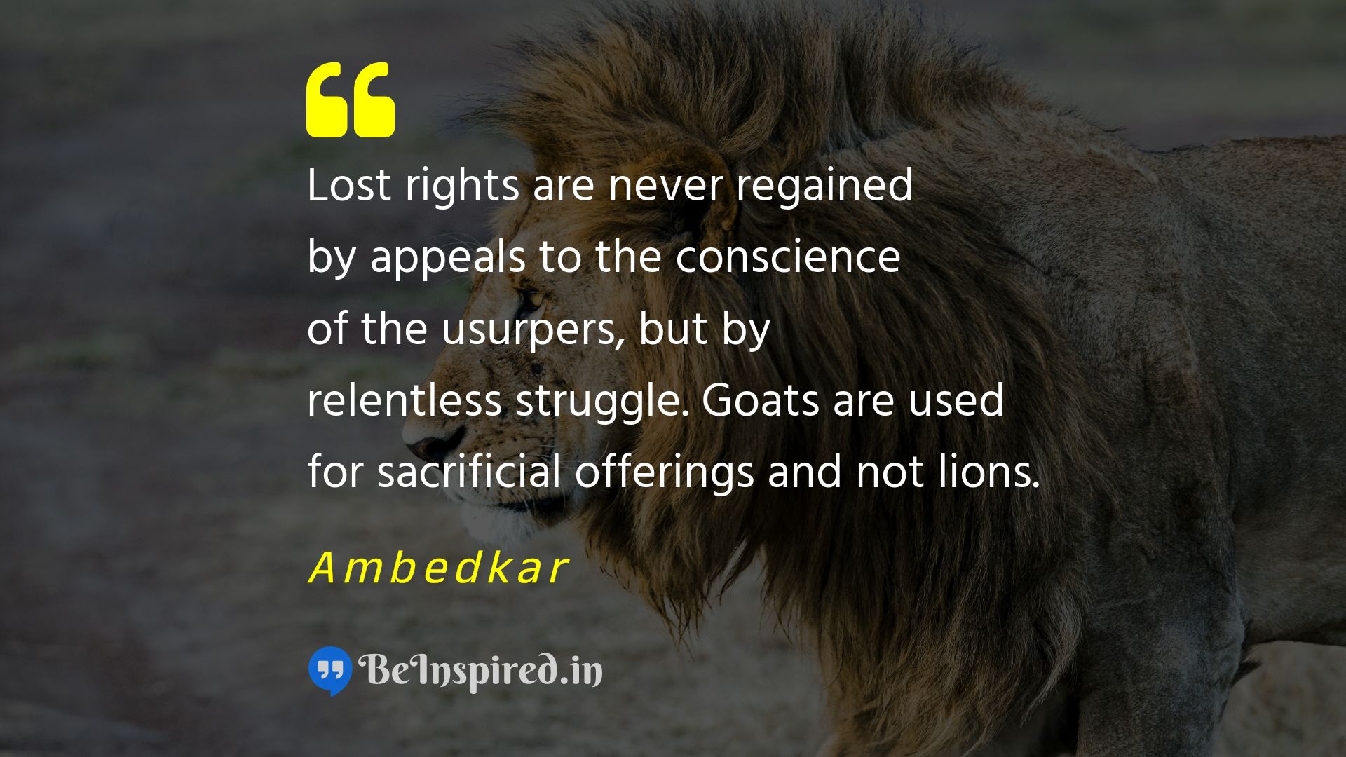 Lost rights are never regained by appeals to the conscience of the usurpers, but by relentless struggle. Goats are used for sacrificial offerings and not lions.