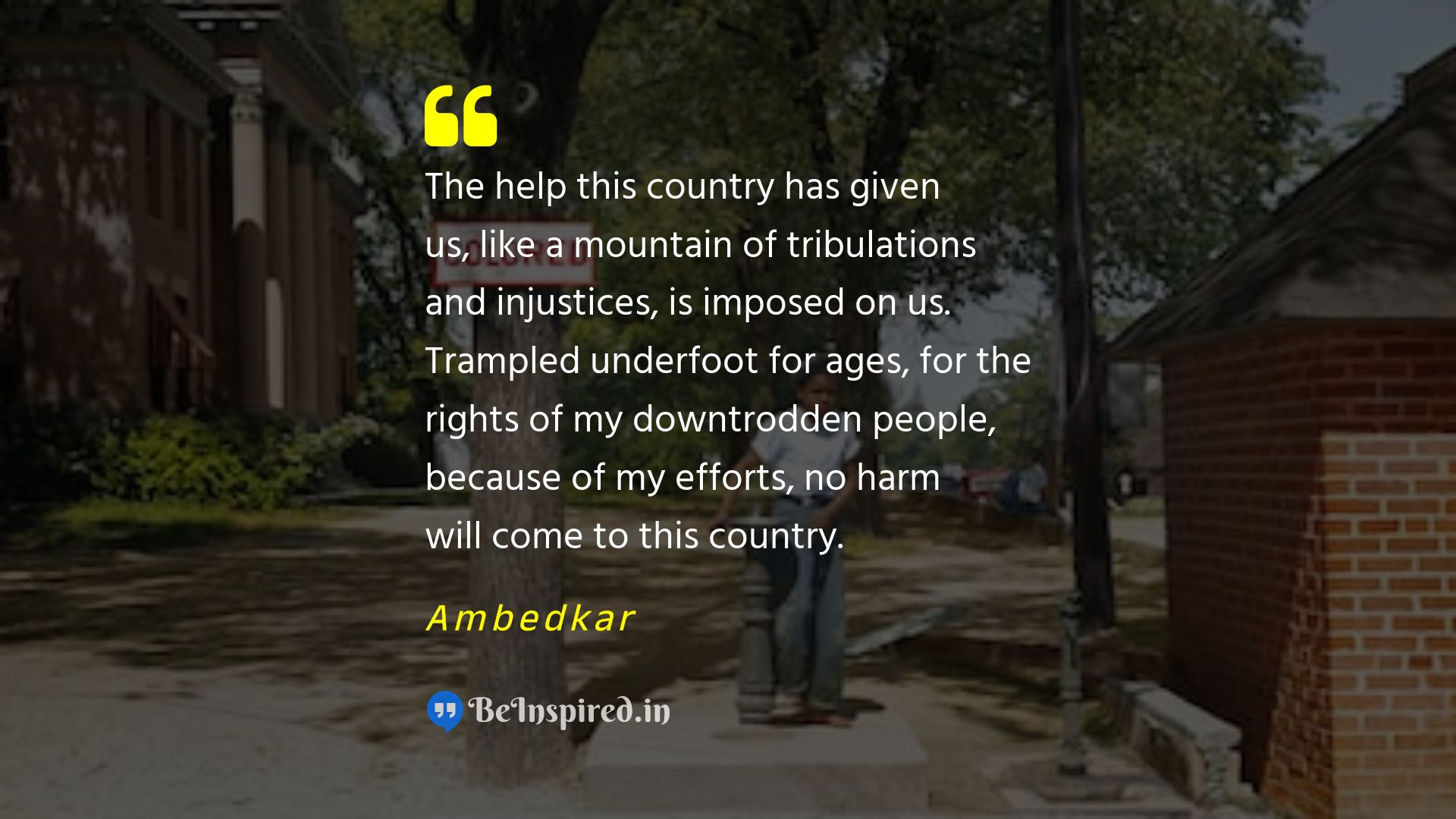 The help this country has given us, like a mountain of tribulations and injustices, is imposed on us. Trampled underfoot for ages, for the rights of my downtrodden people, because of my efforts, no harm will come to this country.