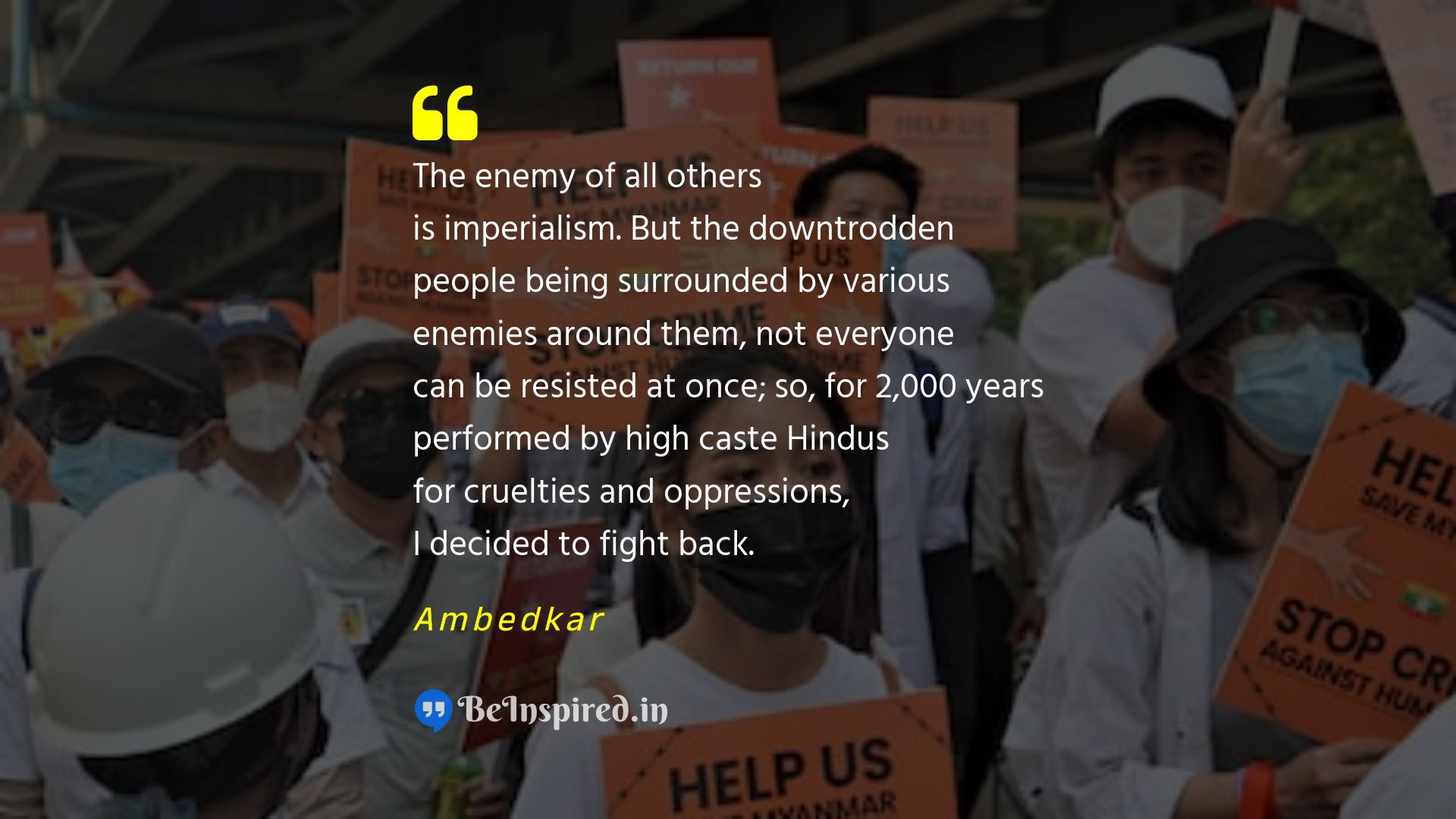 The enemy of all others is imperialism. But the downtrodden people being surrounded by various enemies around them, not everyone can be resisted at once; so, for 2,000 years performed by high caste Hindus for cruelties and oppressions, I decided to fight back.