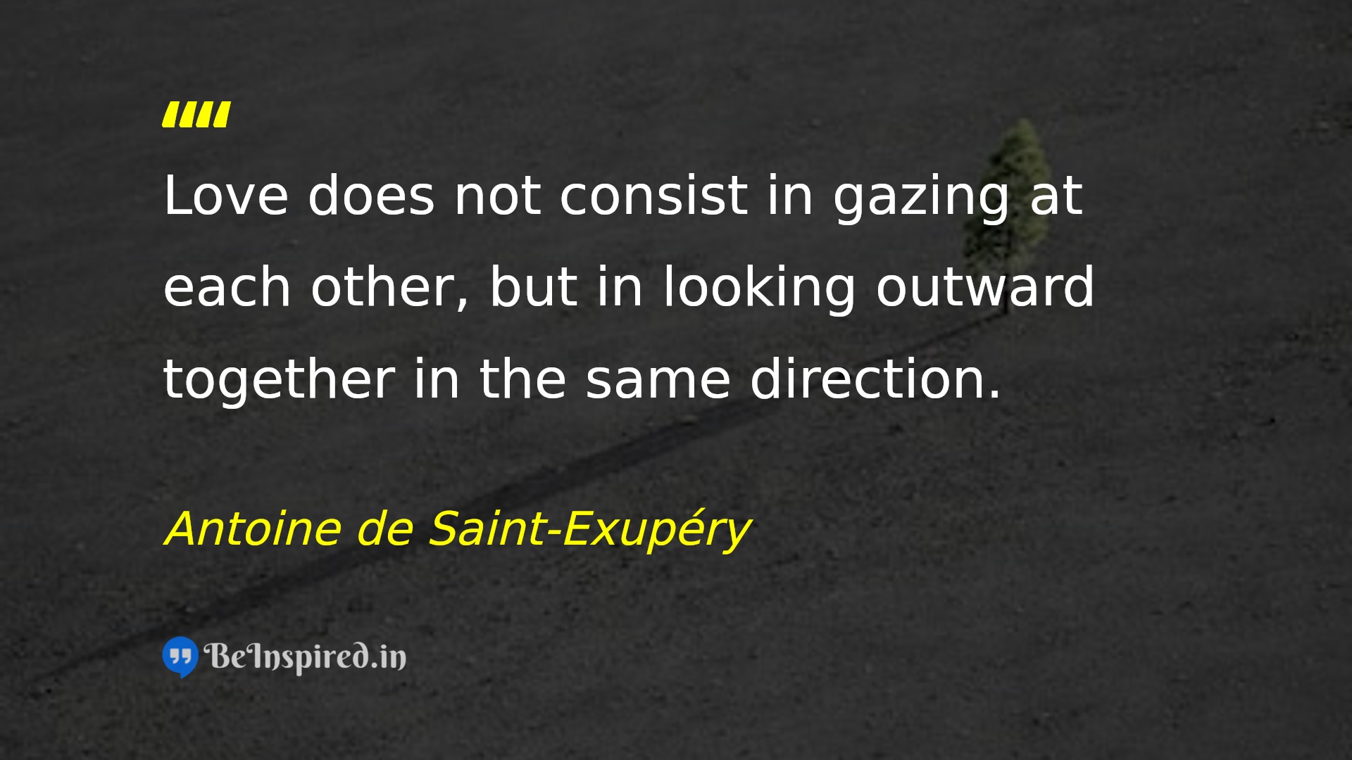 Love does not consist in gazing at each other, but in looking outward together in the same direction.