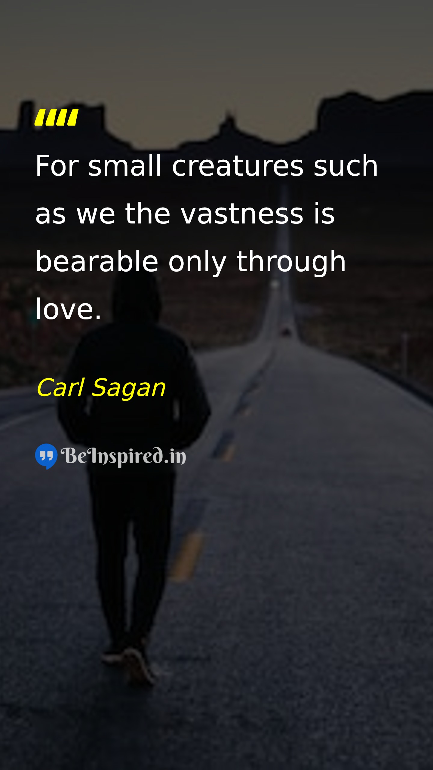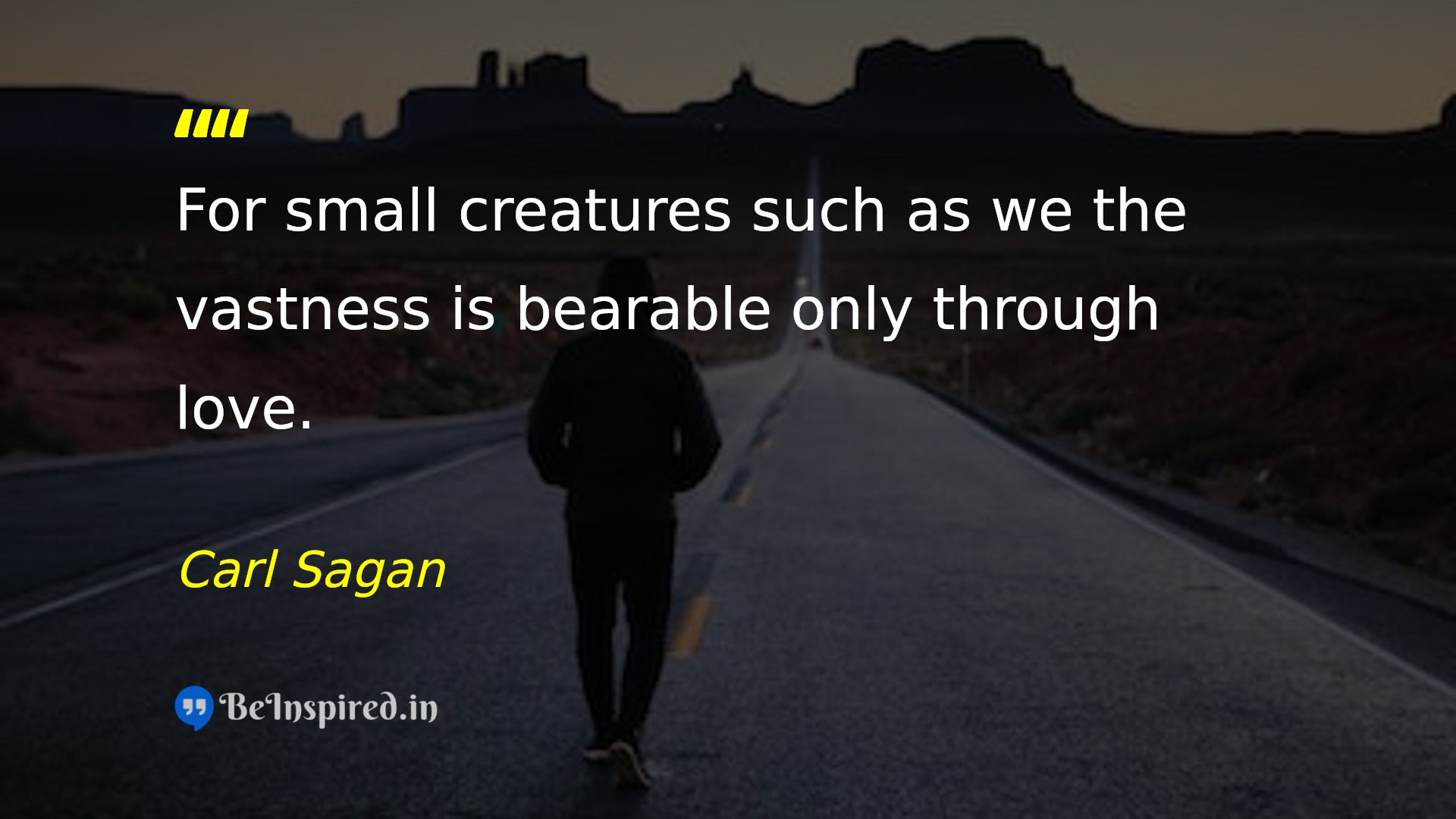 For small creatures such as we the vastness is bearable only through love.