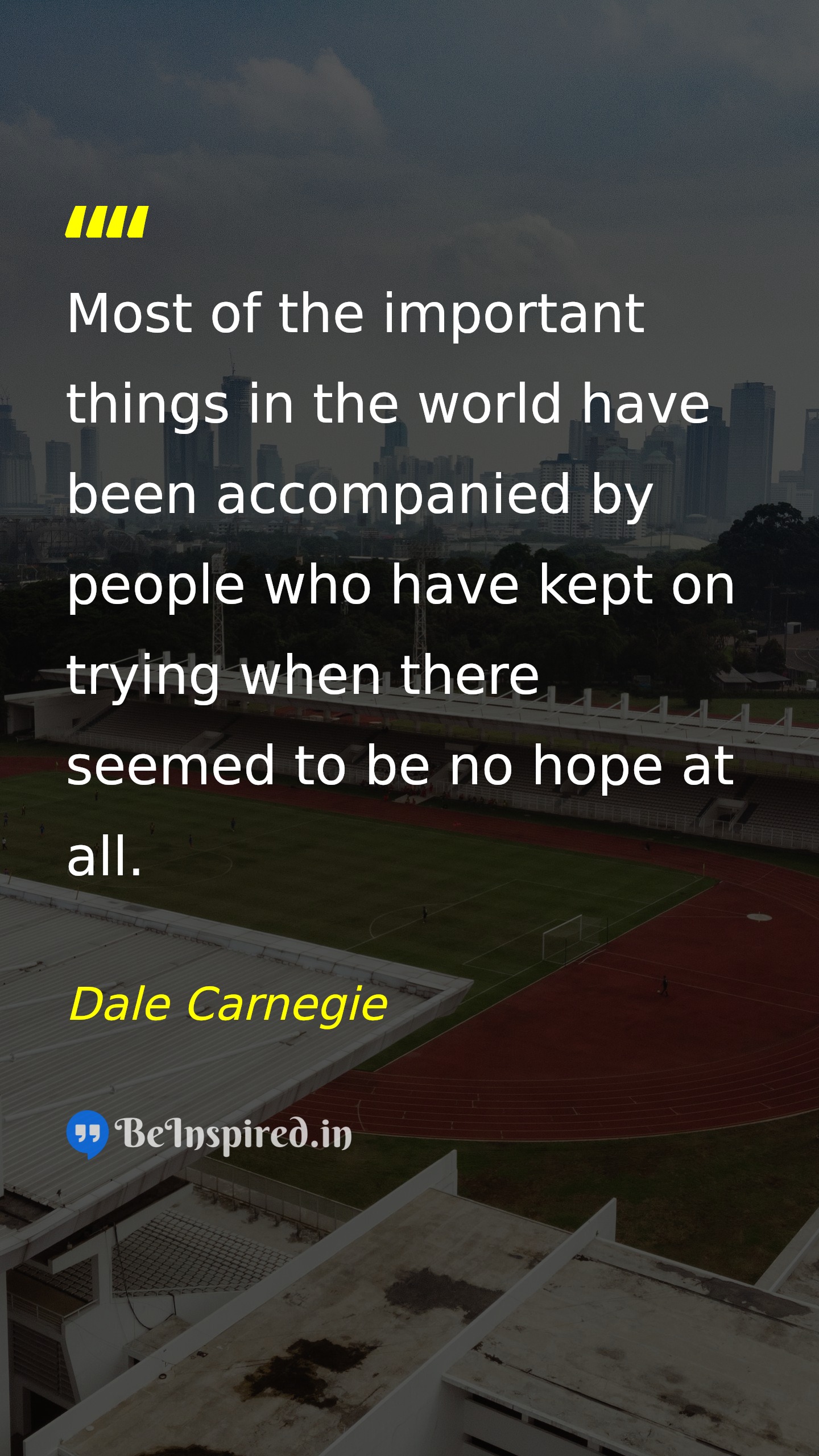 Most of the important things in the world have been accompanied by people who have kept on trying when there seemed to be no hope at all.