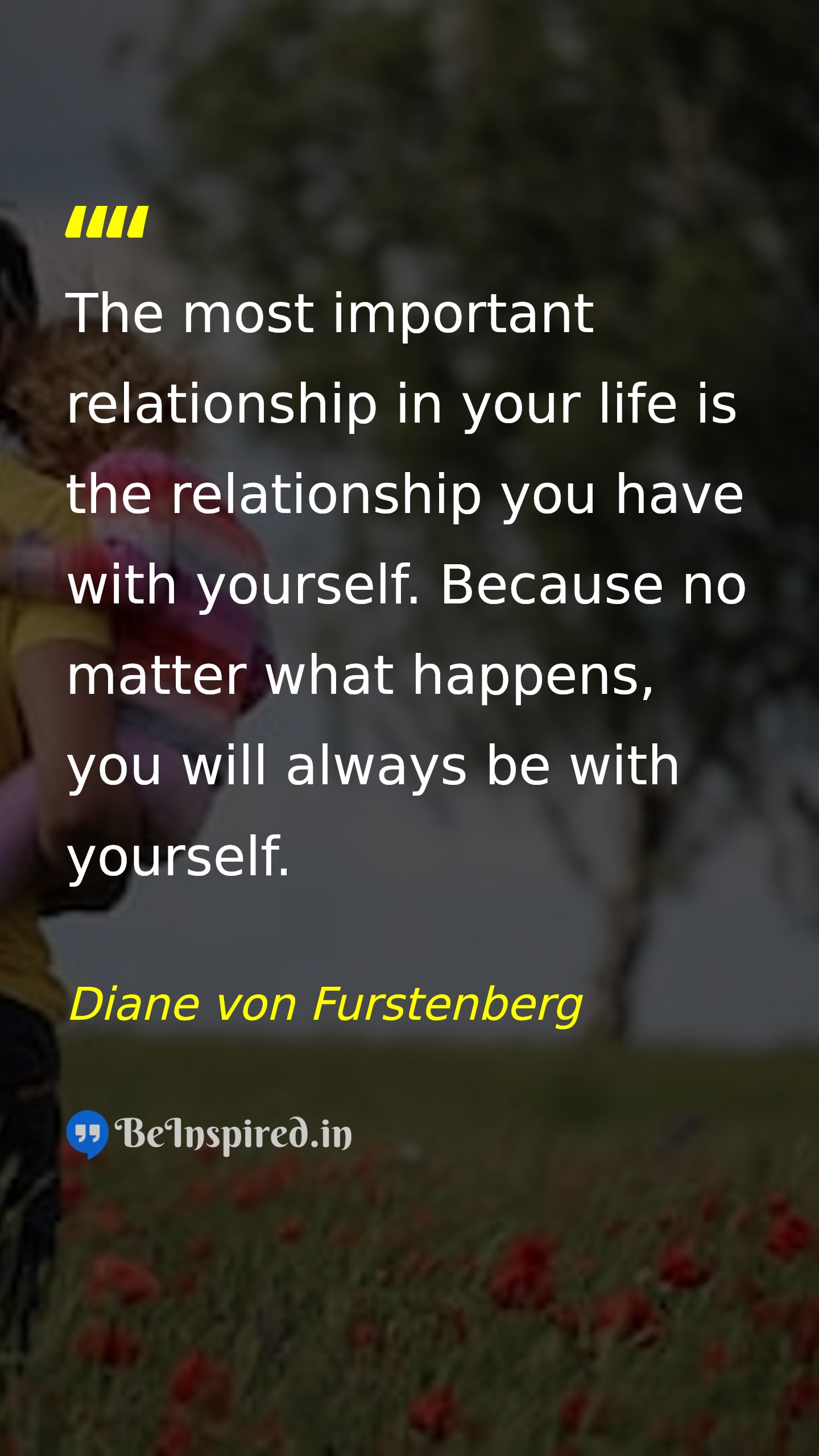 The most important relationship in your life is the relationship you have with yourself. Because no matter what happens, you will always be with yourself.