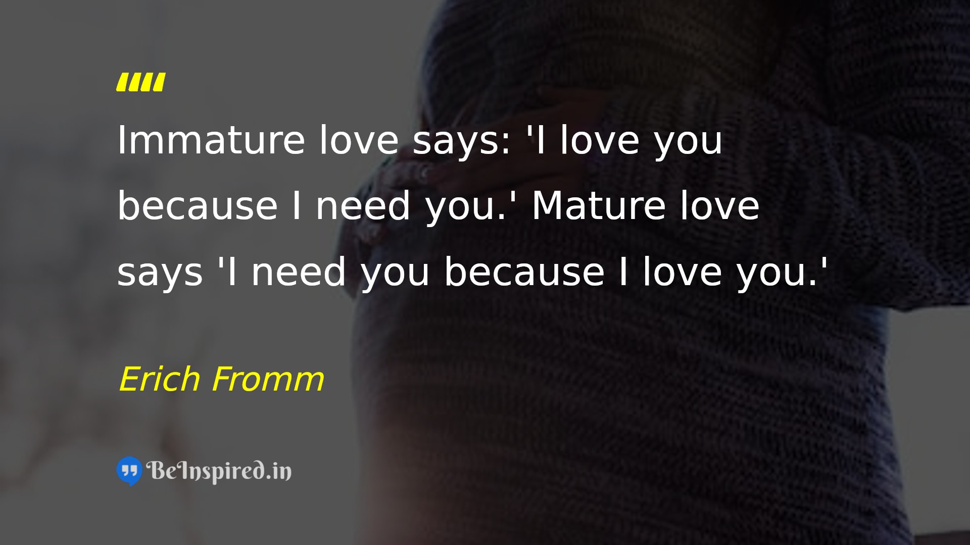 Immature love says: 'I love you because I need you.' Mature love says 'I need you because I love you.'