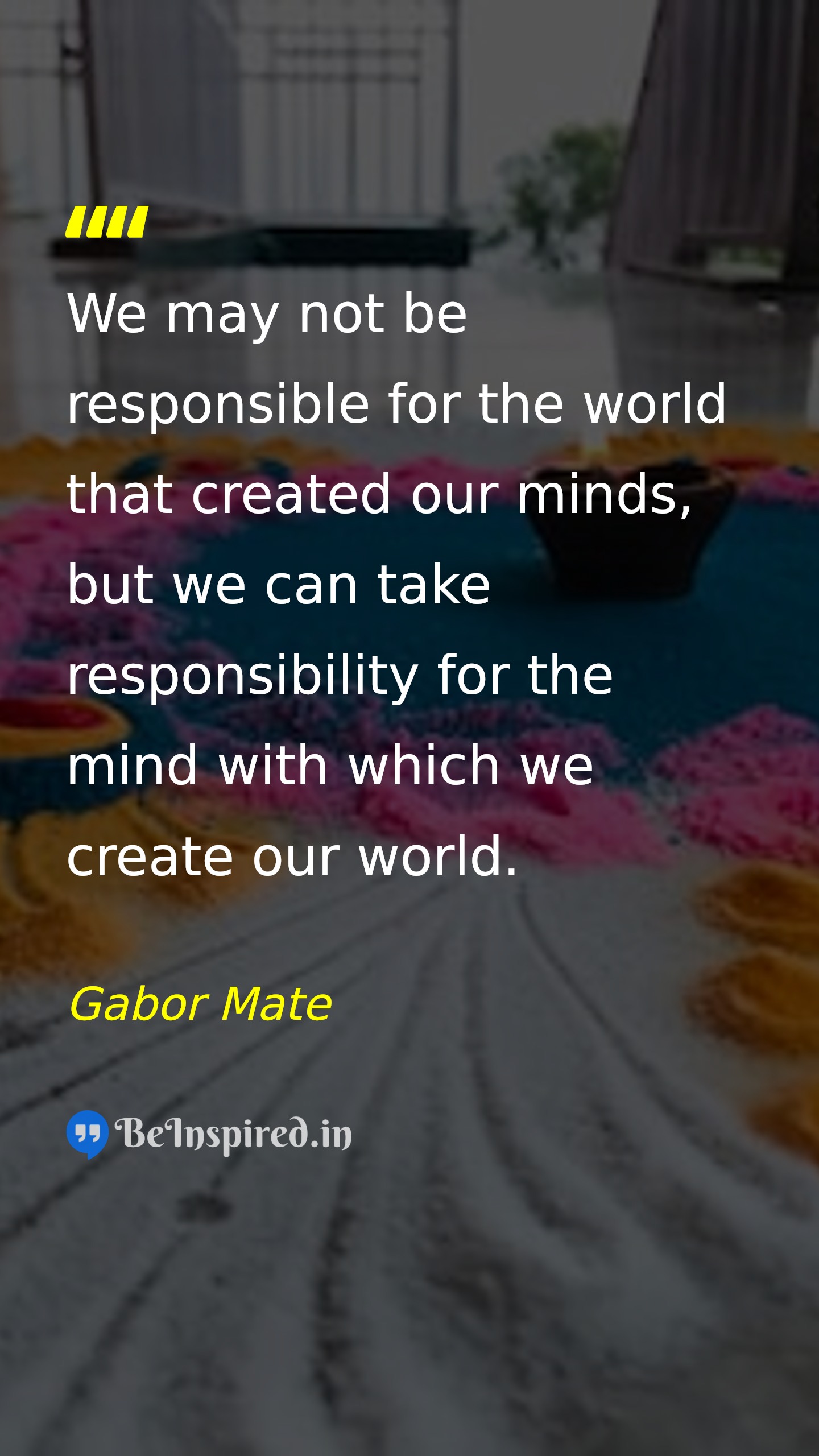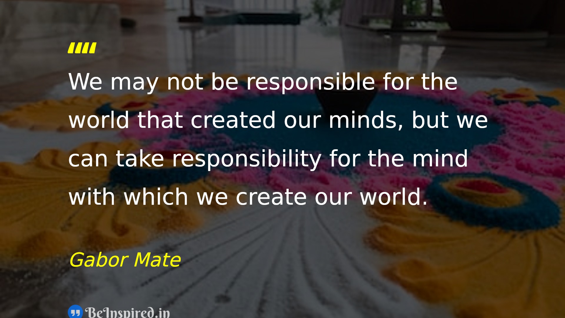 We may not be responsible for the world that created our minds, but we can take responsibility for the mind with which we create our world.