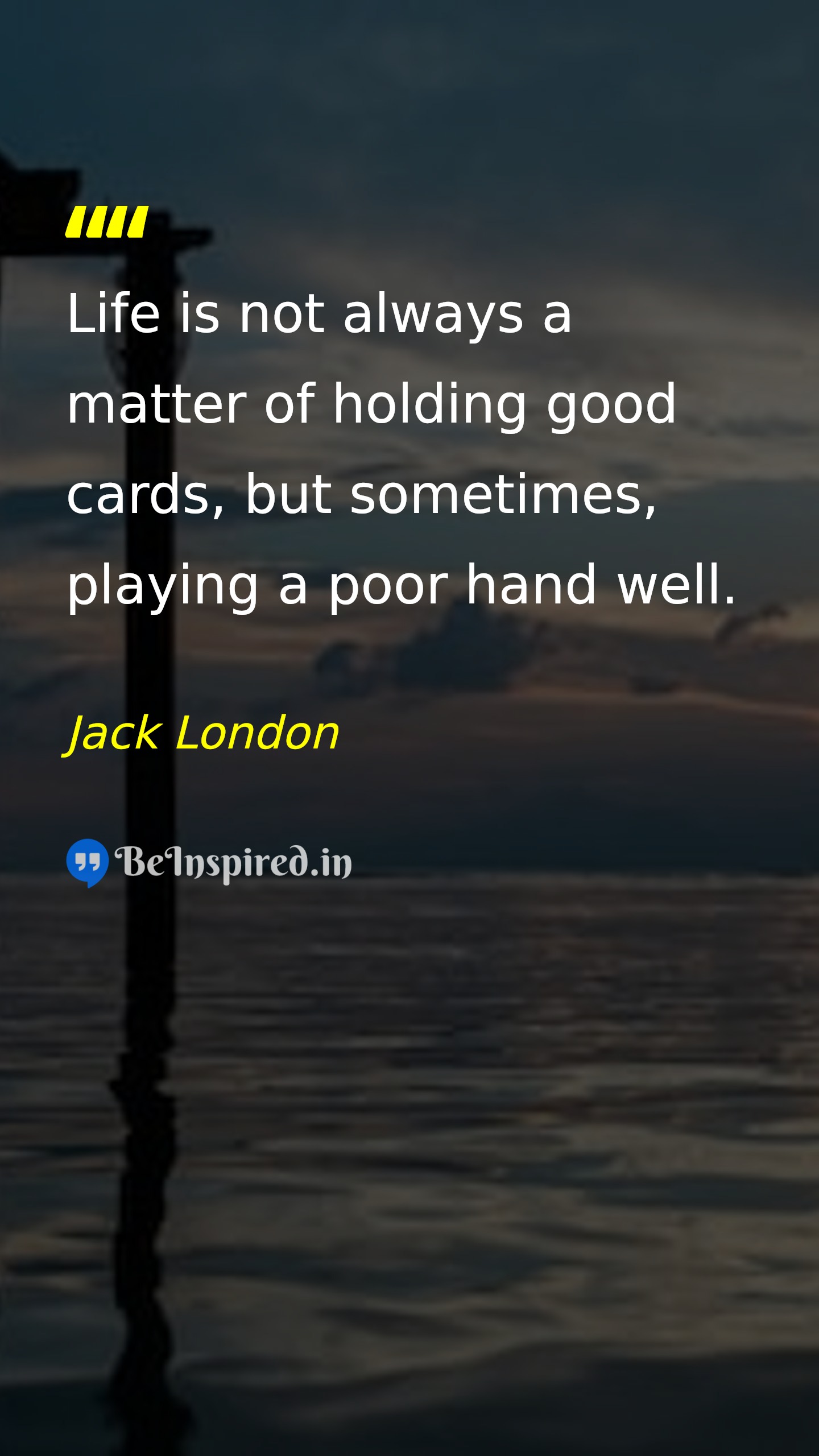 Life is not always a matter of holding good cards, but sometimes, playing a poor hand well.
