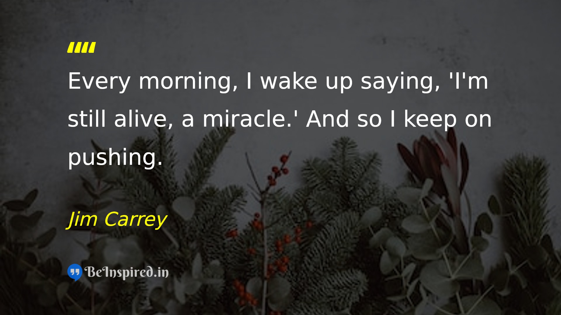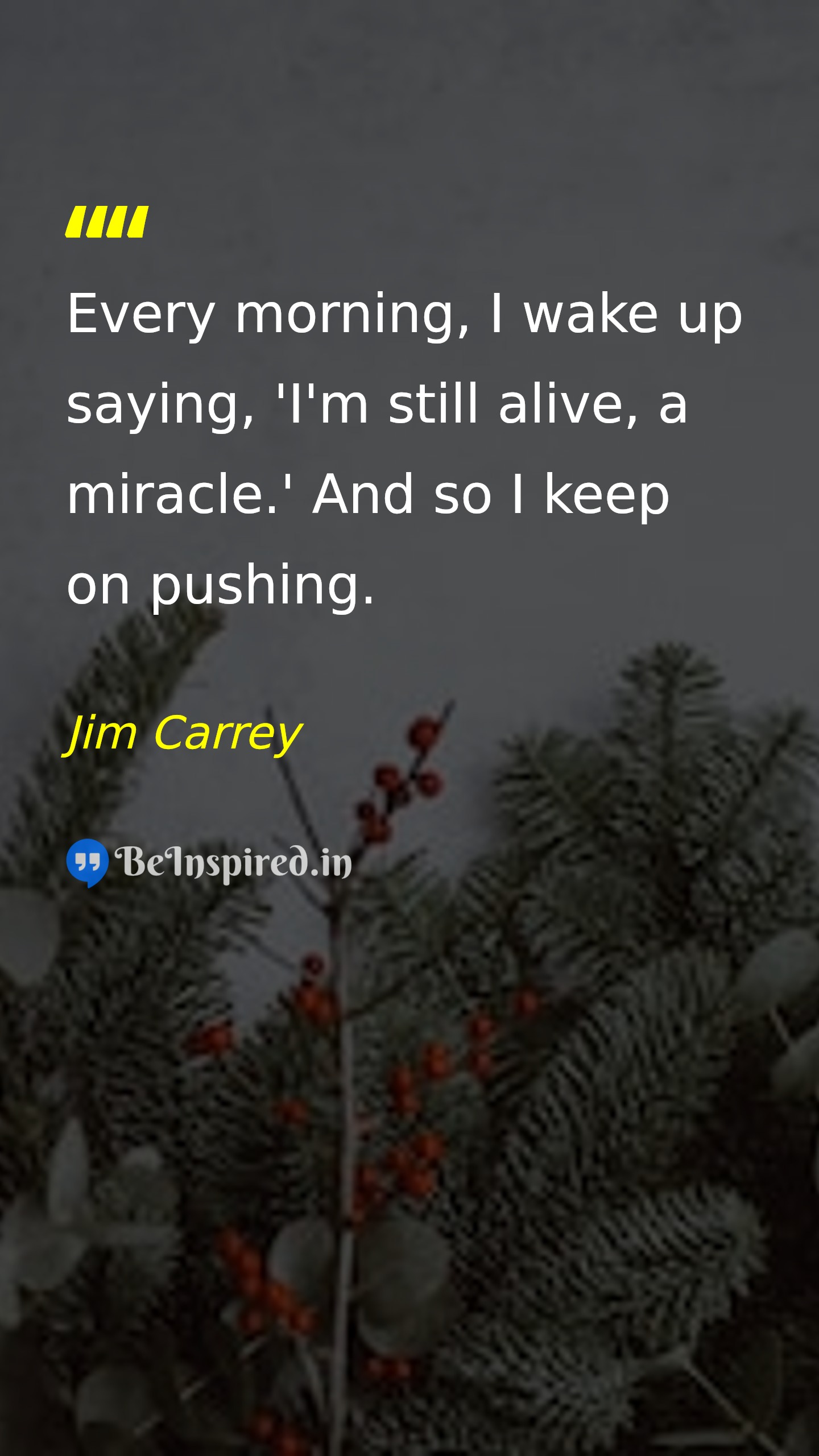 Every morning, I wake up saying, 'I'm still alive, a miracle.' And so I keep on pushing.