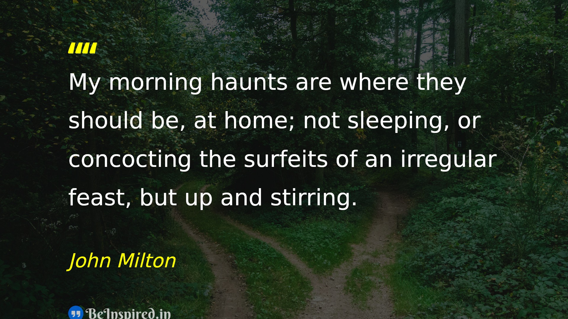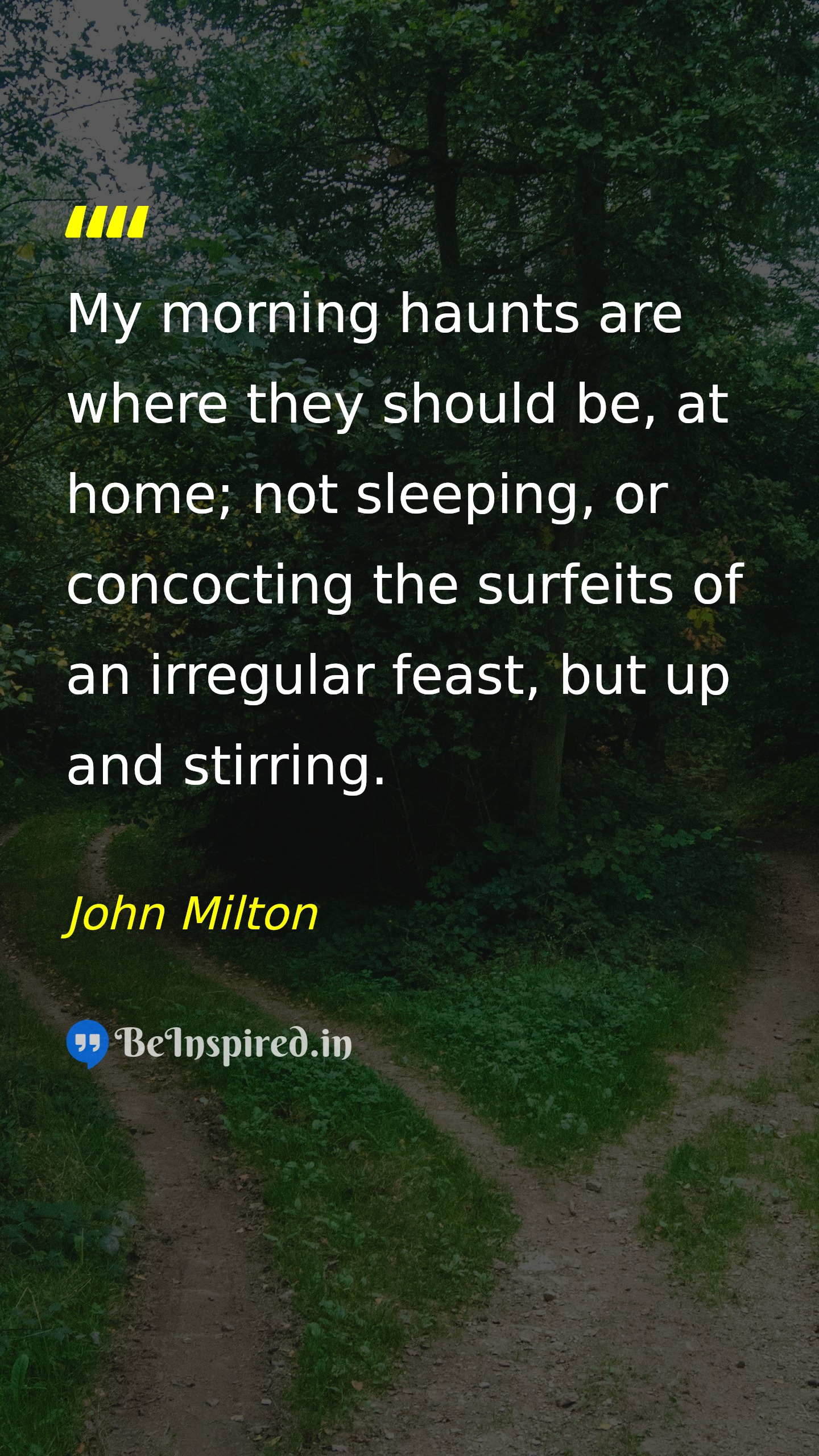 My morning haunts are where they should be, at home; not sleeping, or concocting the surfeits of an irregular feast, but up and stirring.