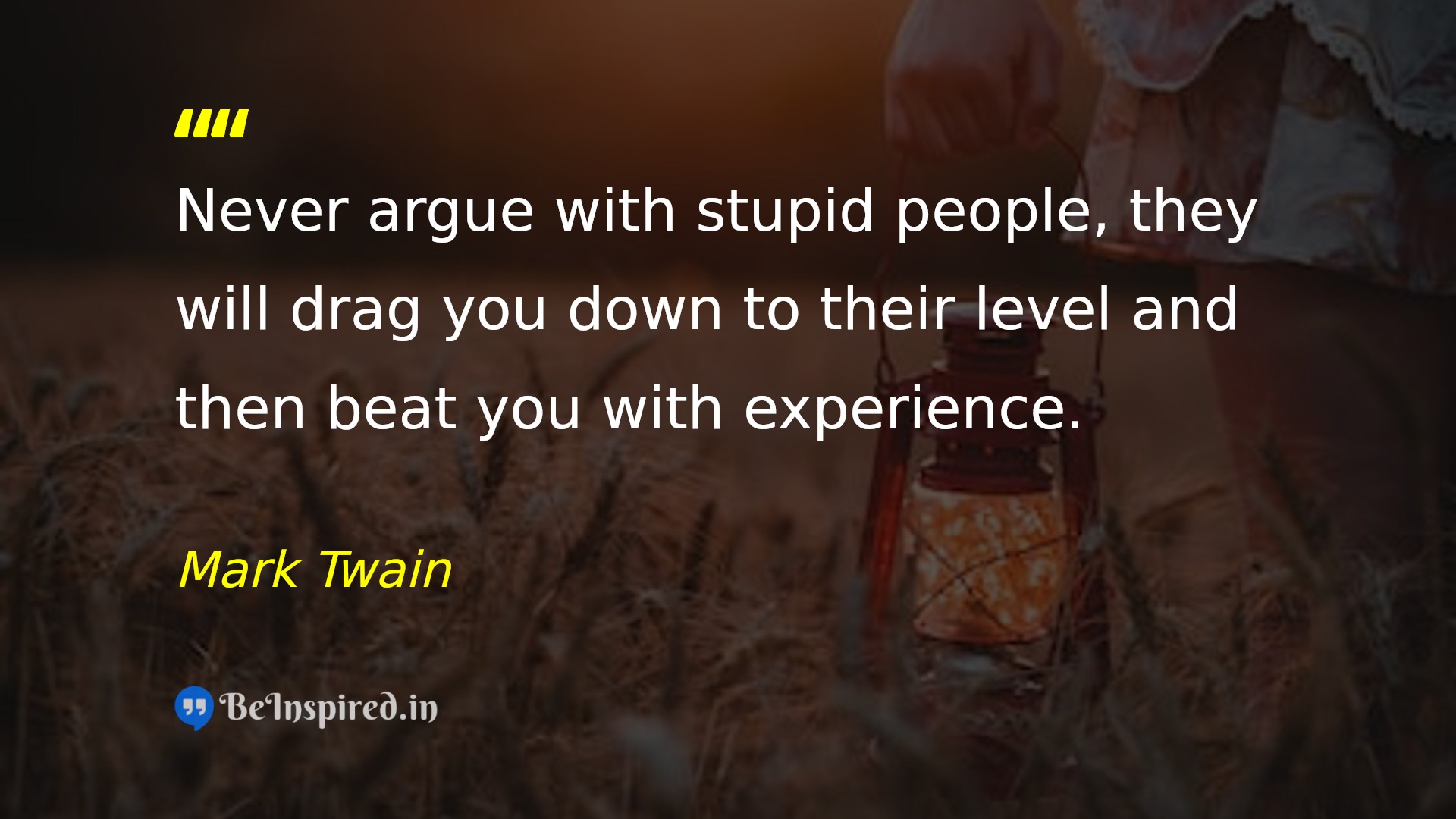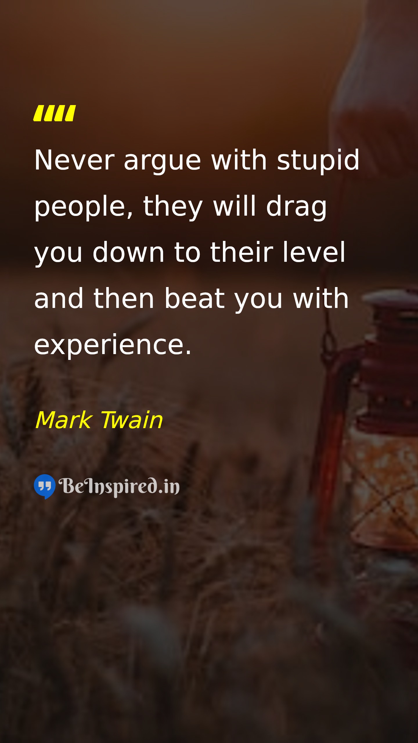 Never argue with stupid people, they will drag you down to their level and then beat you with experience.