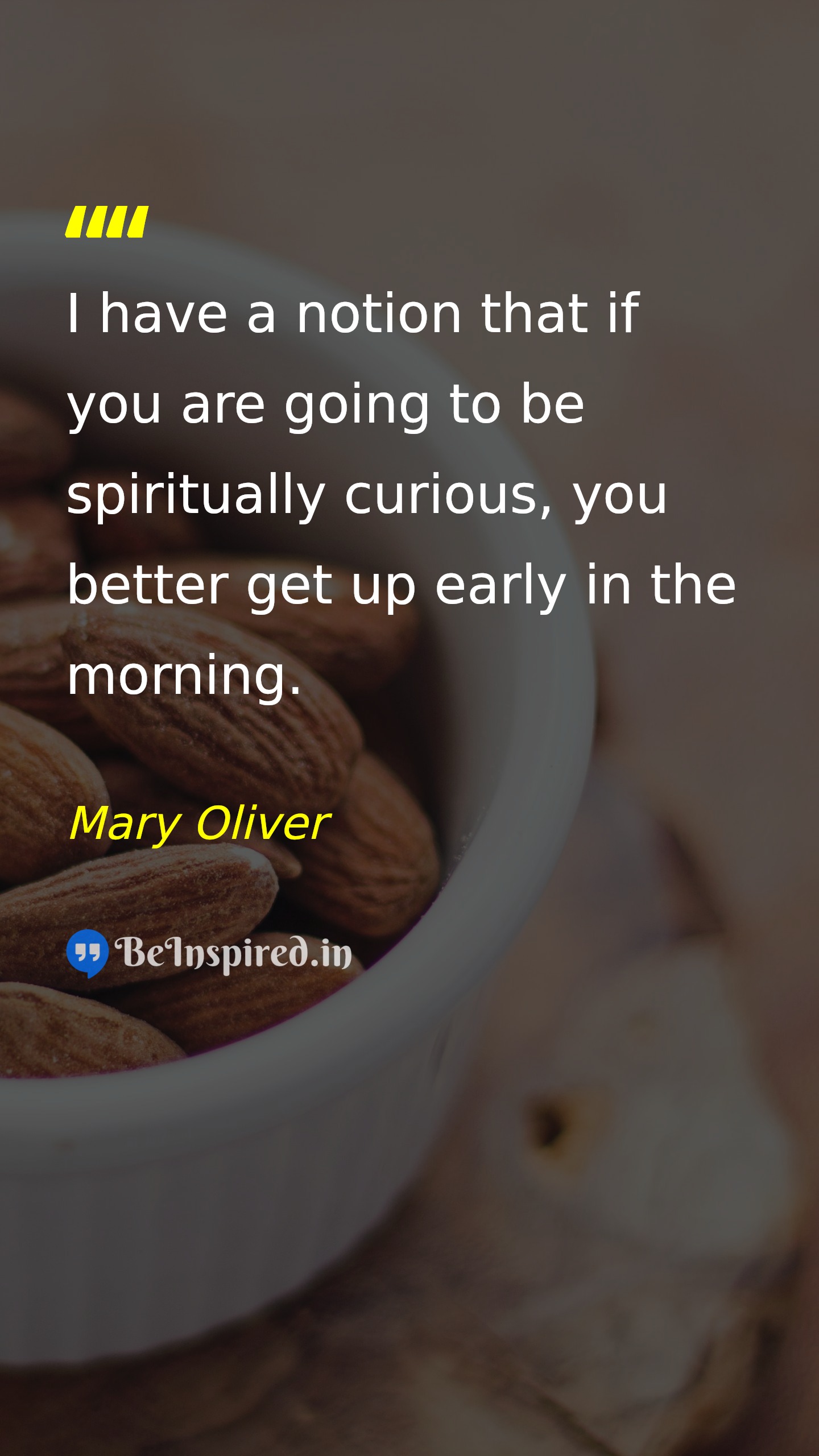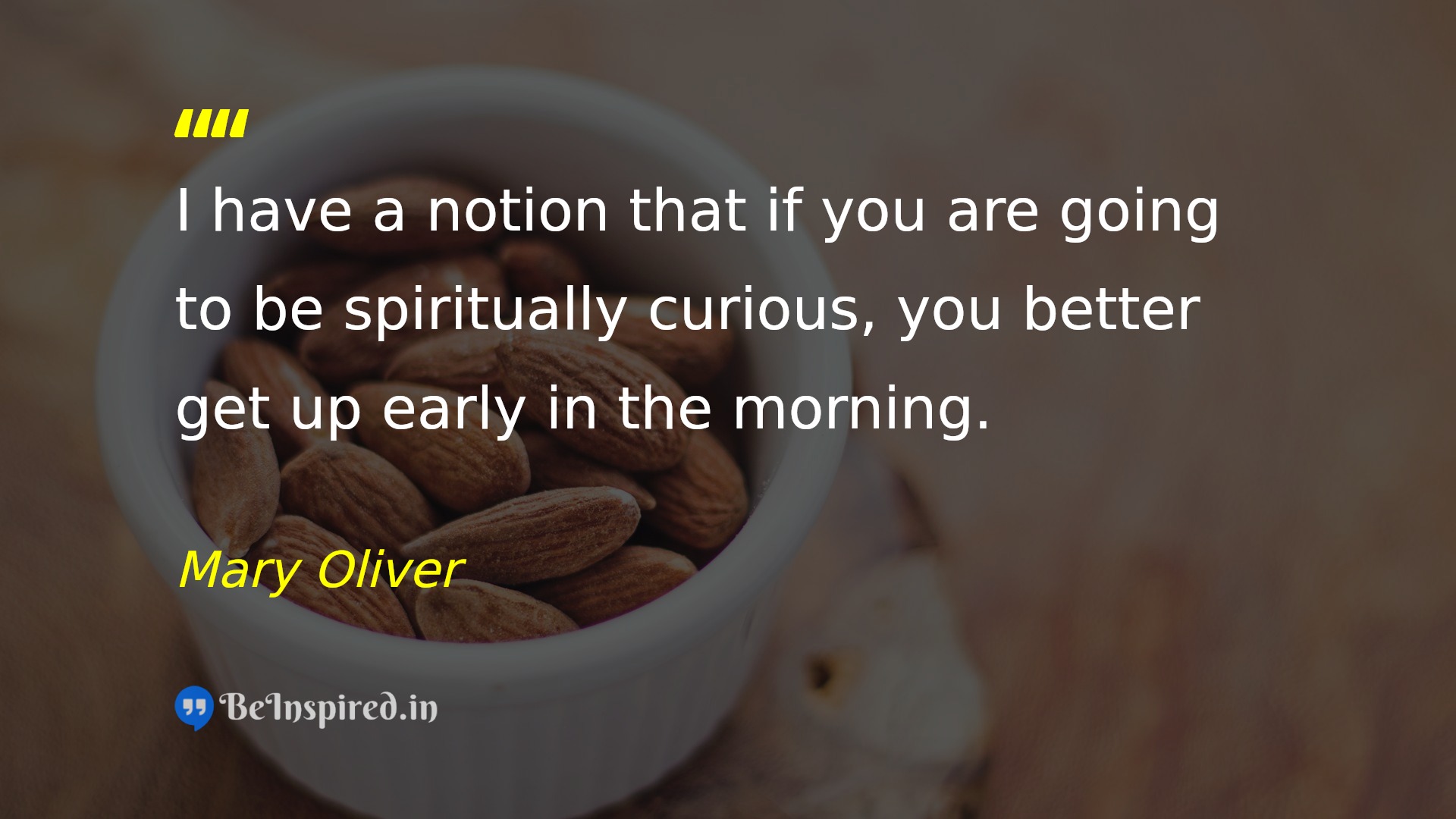 I have a notion that if you are going to be spiritually curious, you better get up early in the morning.