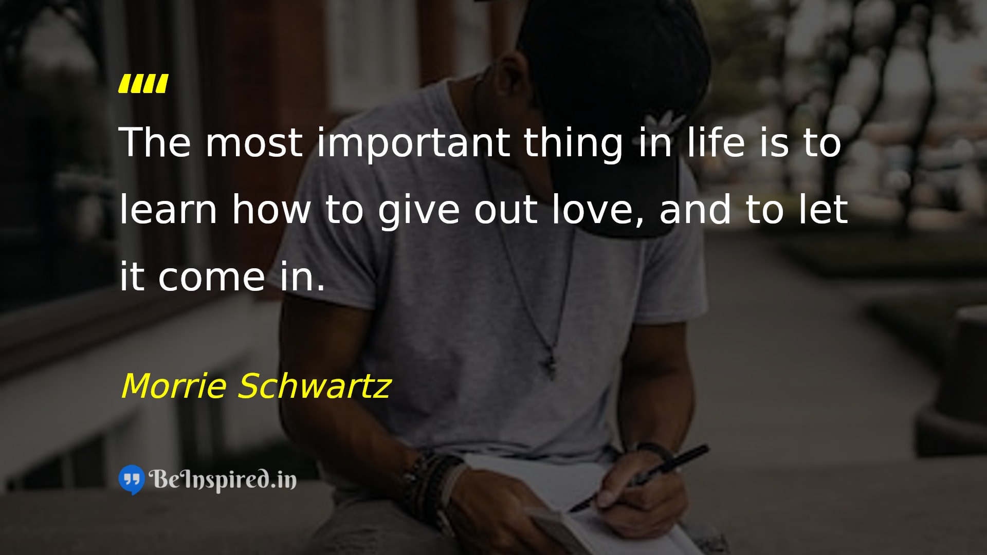 The most important thing in life is to learn how to give out love, and to let it come in.