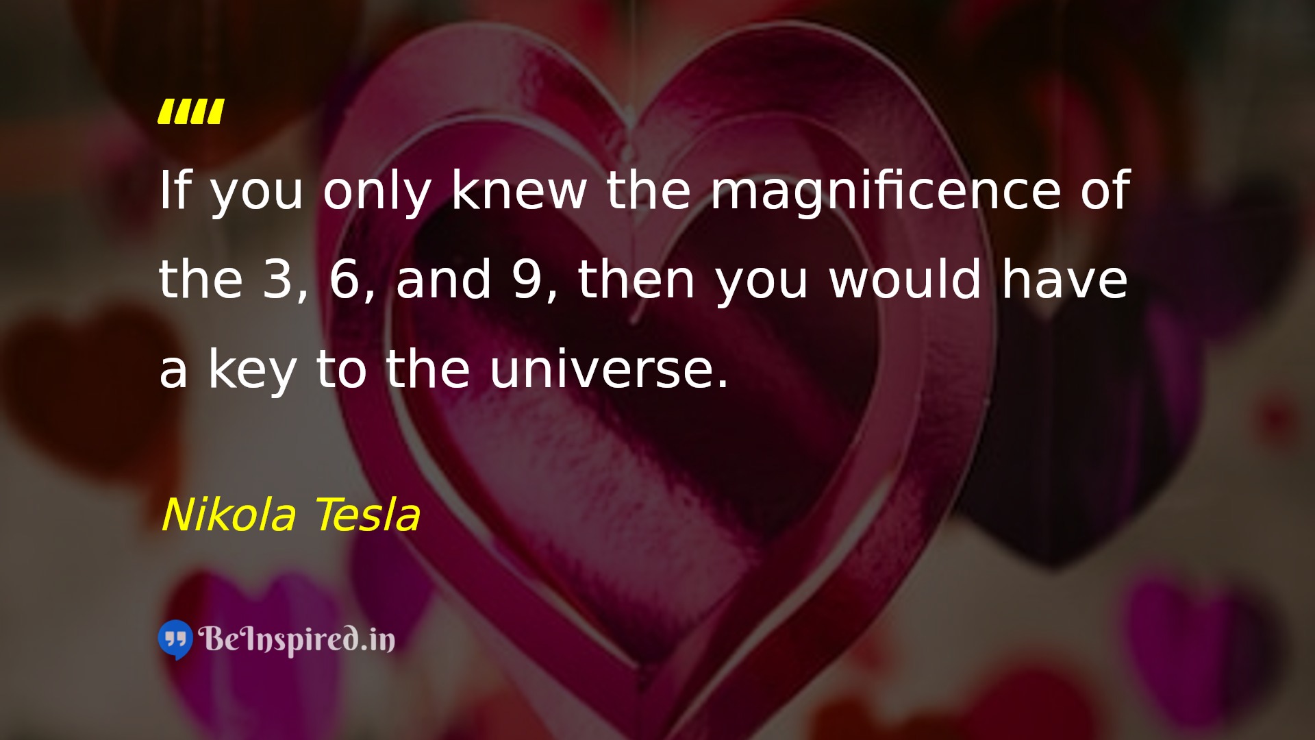 If you only knew the magnificence of the 3, 6, and 9, then you would have a key to the universe.