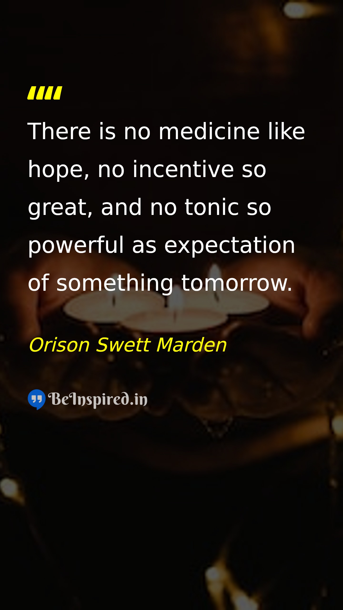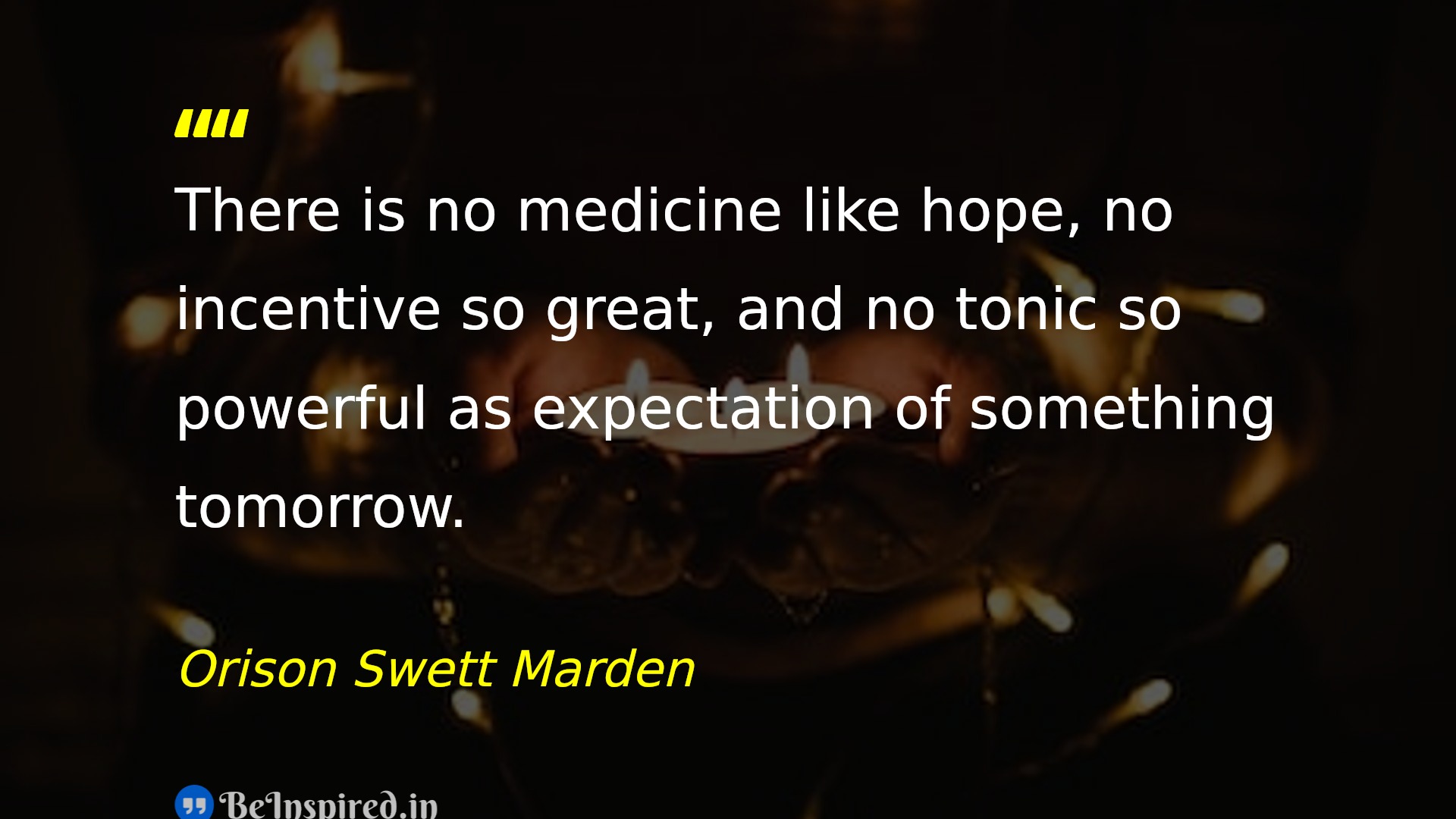 There is no medicine like hope, no incentive so great, and no tonic so powerful as expectation of something tomorrow.