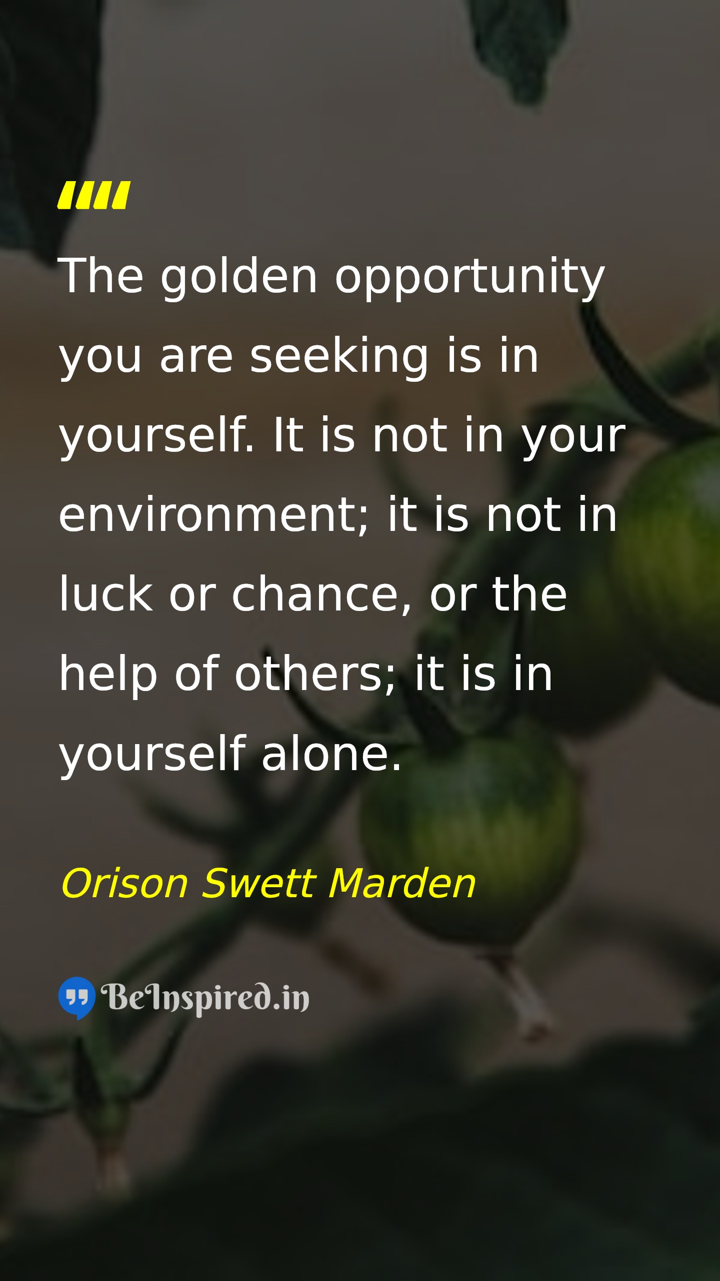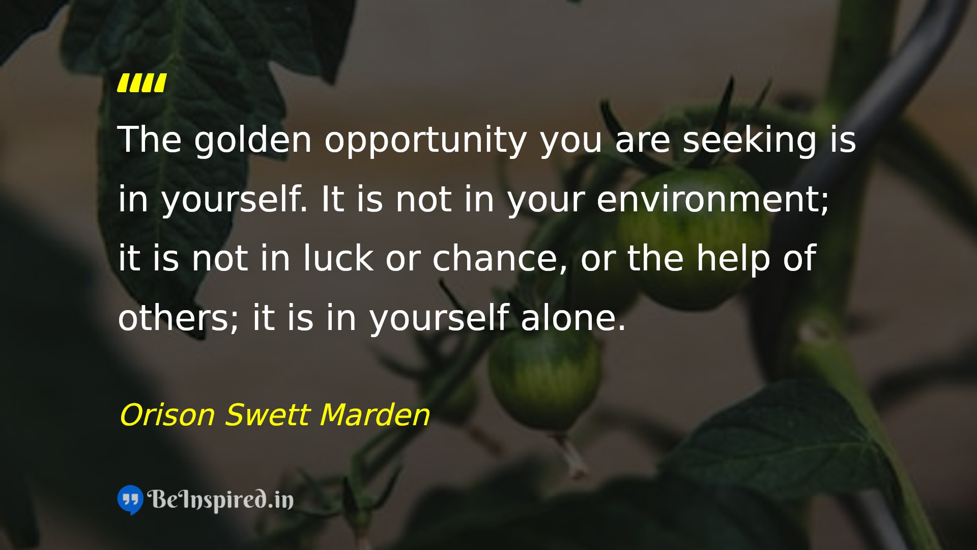 The golden opportunity you are seeking is in yourself. It is not in your environment; it is not in luck or chance, or the help of others; it is in yourself alone.