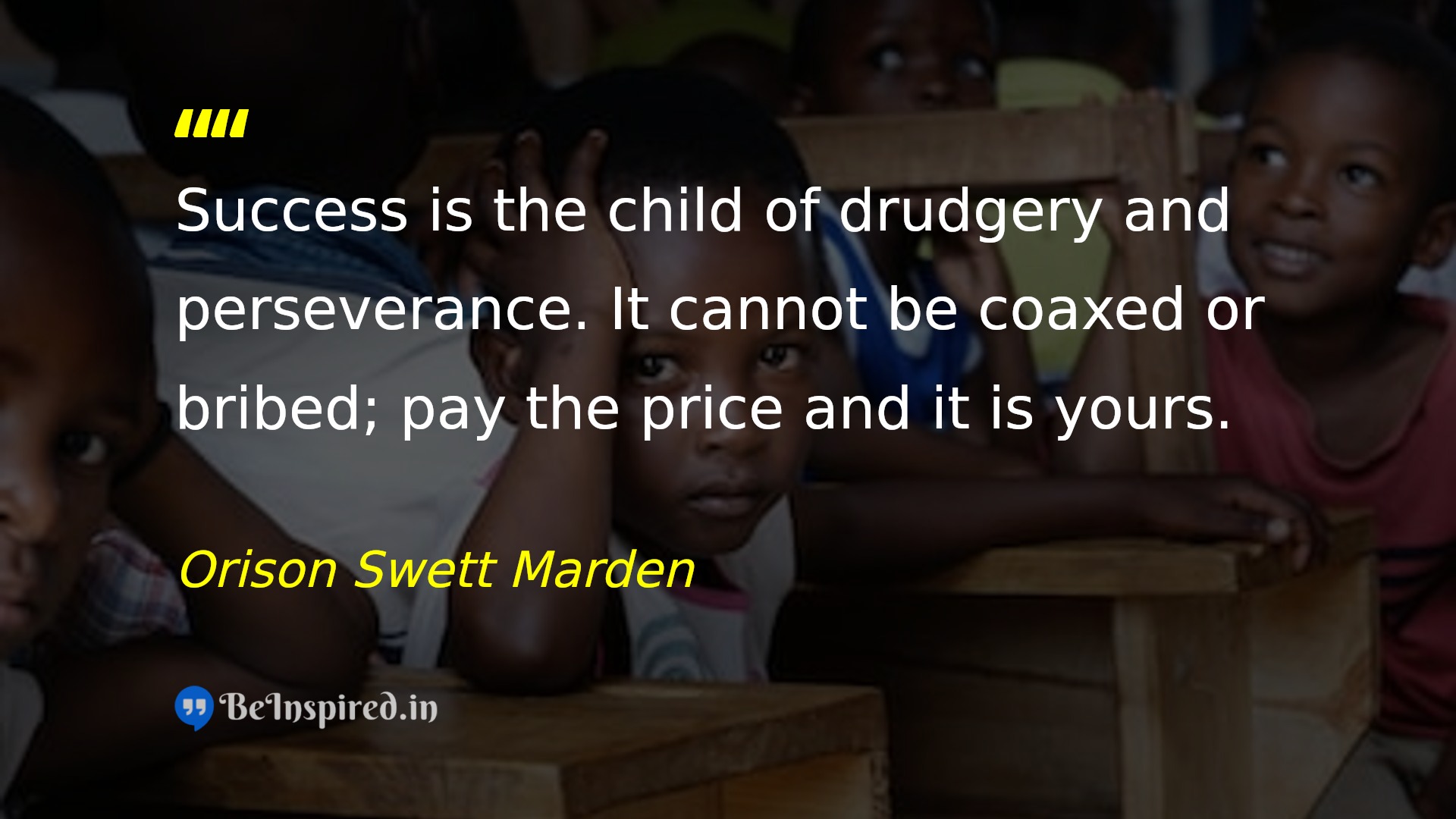 Success is the child of drudgery and perseverance. It cannot be coaxed or bribed; pay the price and it is yours.