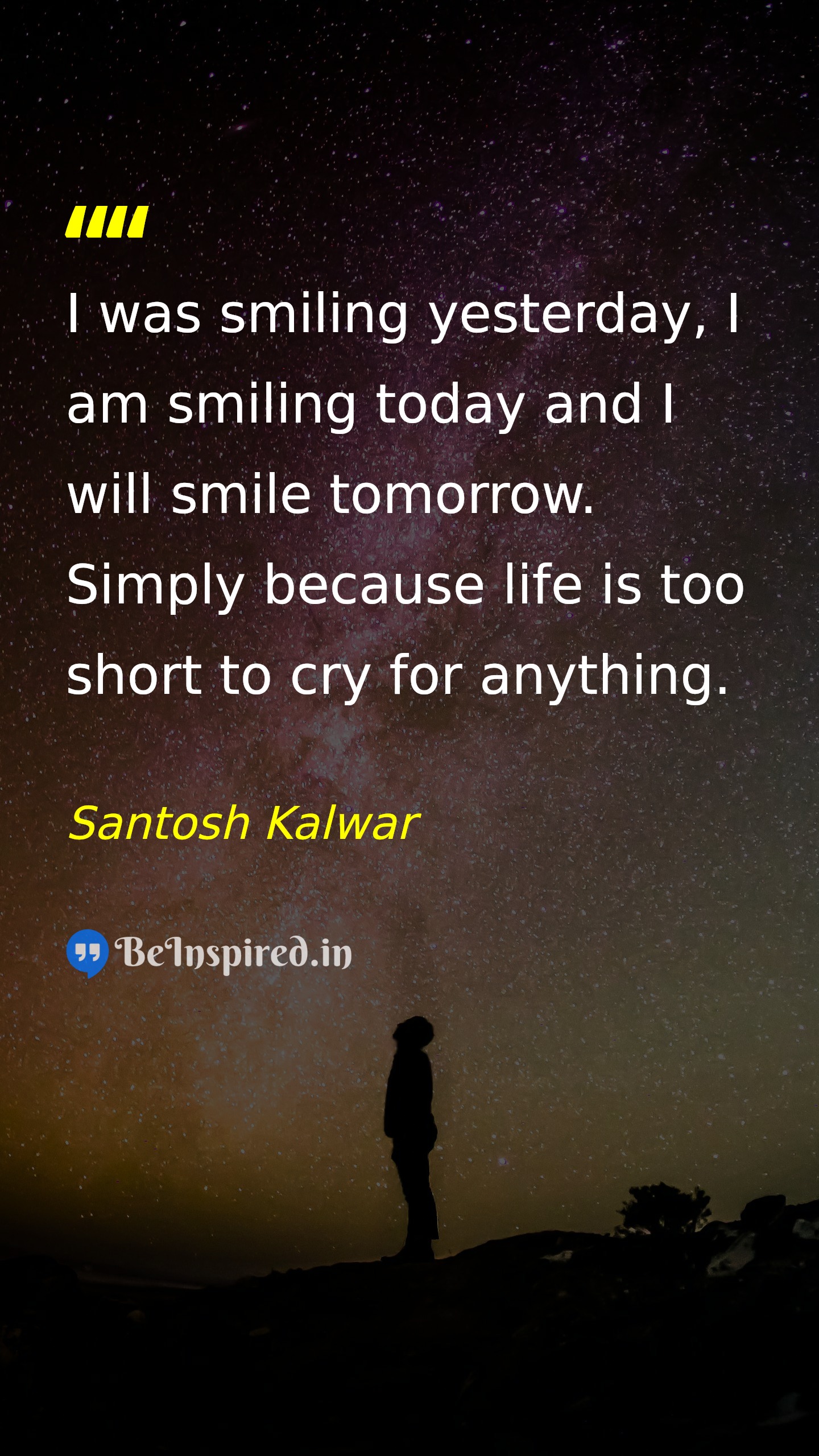 I was smiling yesterday, I am smiling today and I will smile tomorrow. Simply because life is too short to cry for anything.