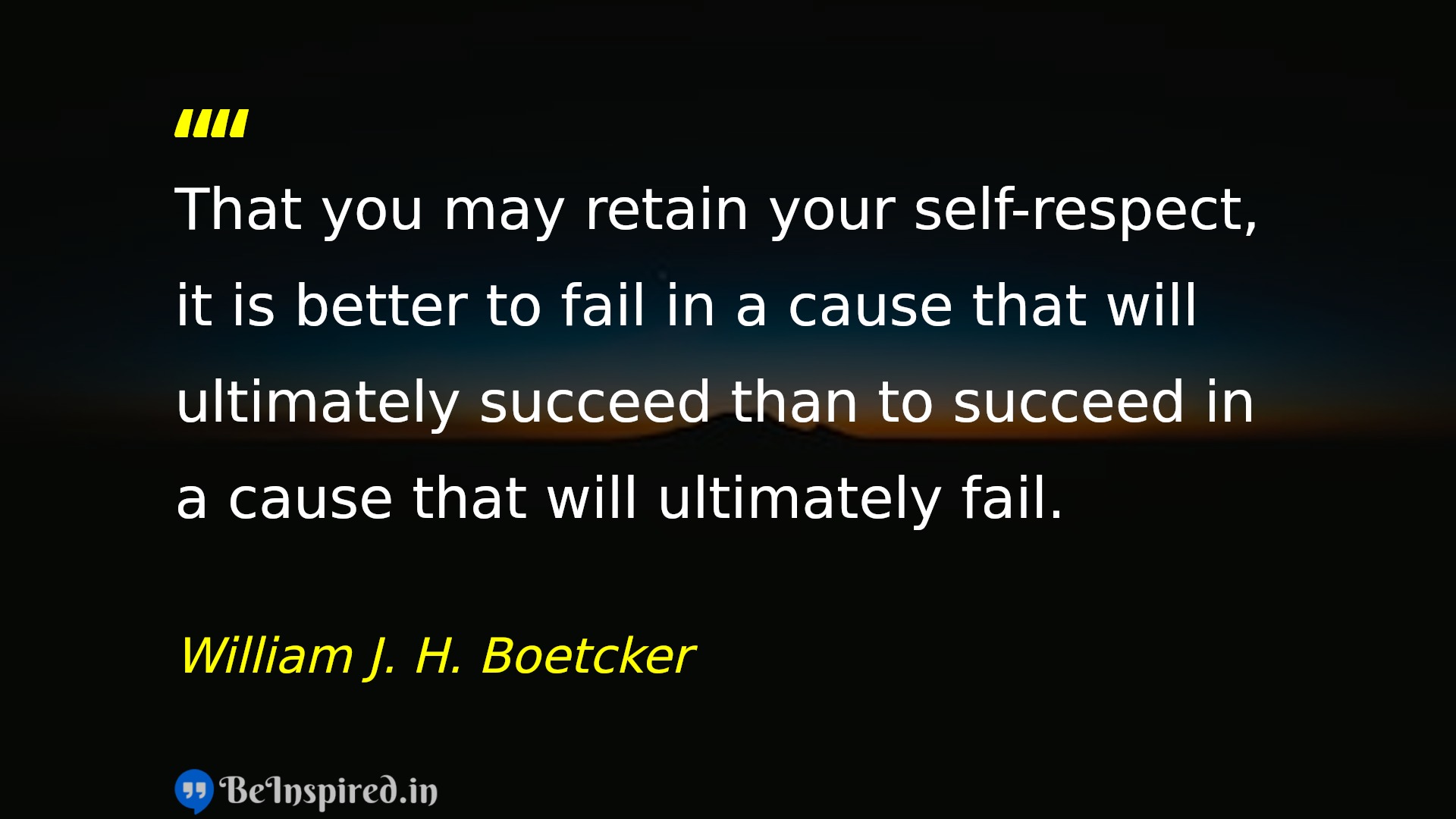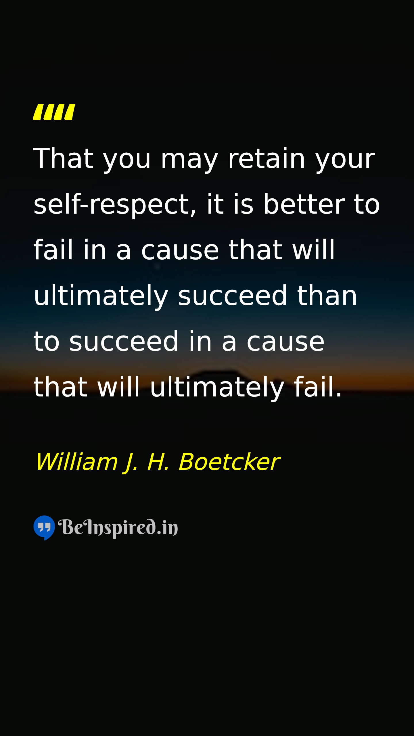 That you may retain your self-respect, it is better to fail in a cause that will ultimately succeed than to succeed in a cause that will ultimately fail.