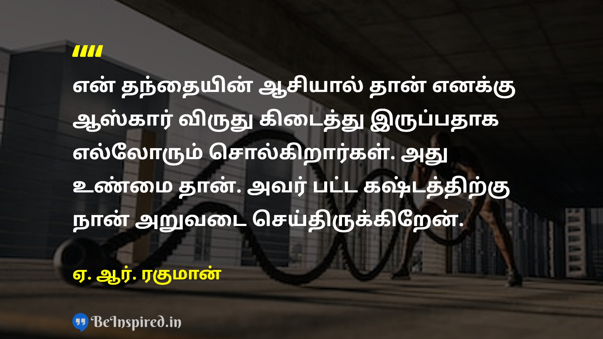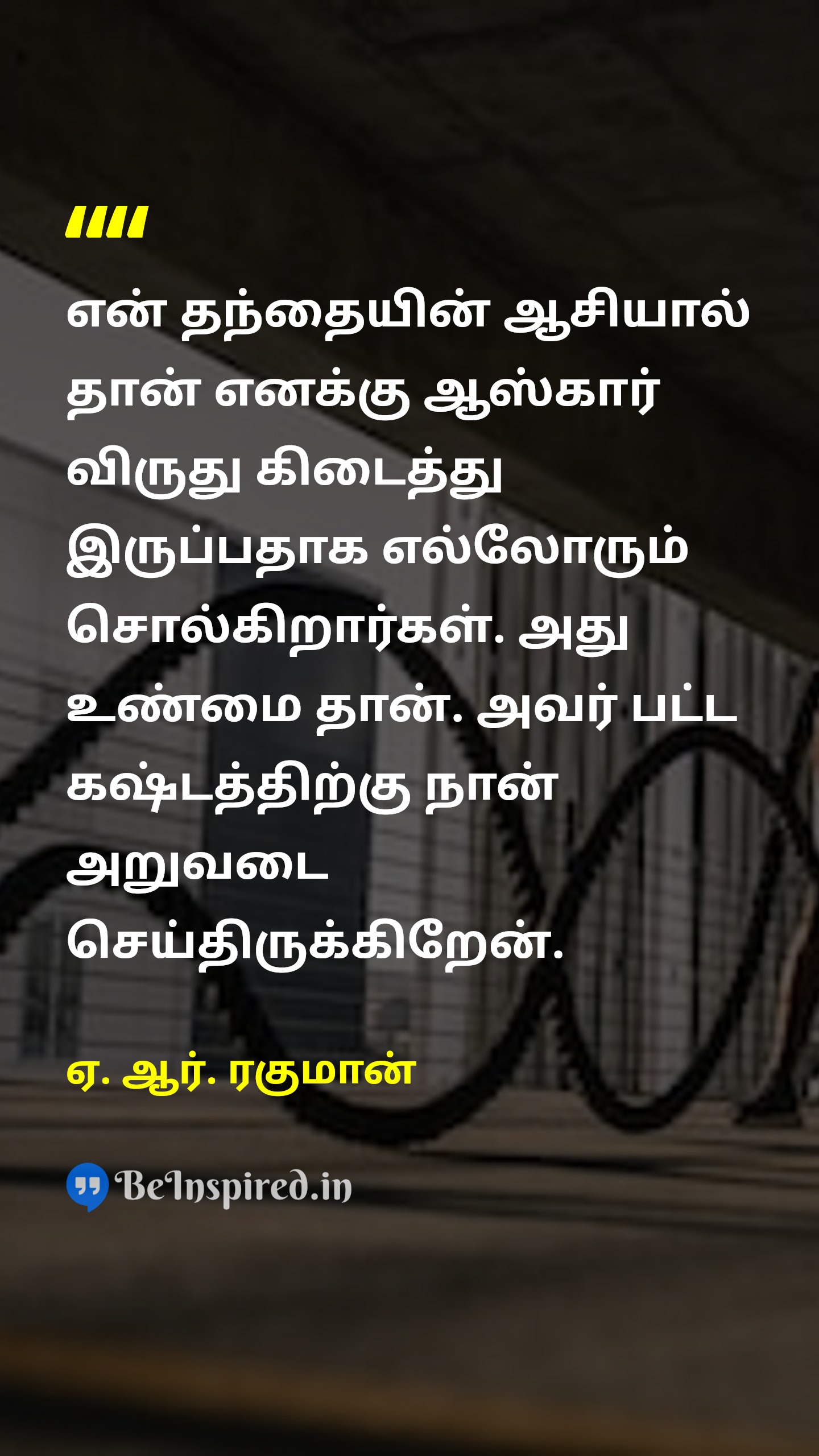 என் தந்தையின் ஆசியால் தான் எனக்கு ஆஸ்கார் விருது கிடைத்து இருப்பதாக எல்லோரும் சொல்கிறார்கள். அது உண்மை தான். அவர் பட்ட கஷ்டத்திற்கு நான் அறுவடை செய்திருக்கிறேன்.