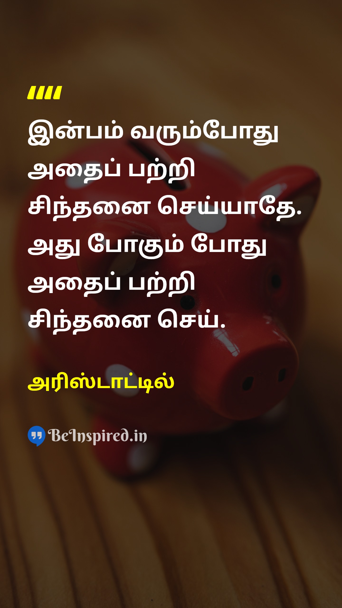 இன்பம் வரும்போது அதைப் பற்றி சிந்தனை செய்யாதே. அது போகும் போது அதைப் பற்றி சிந்தனை செய்.