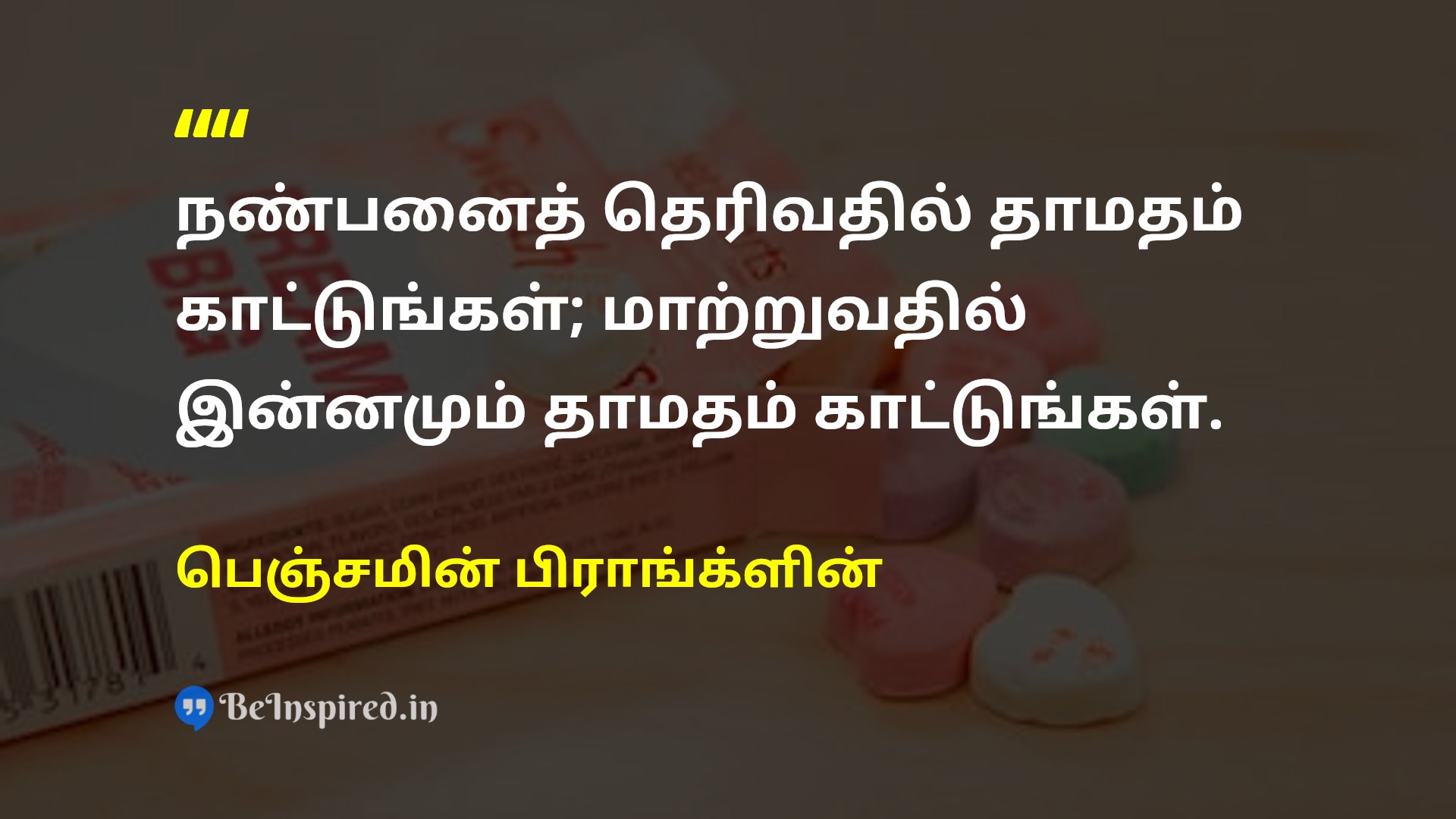 நண்பனைத் தெரிவதில் தாமதம் காட்டுங்கள்; மாற்றுவதில் இன்னமும் தாமதம் காட்டுங்கள்.