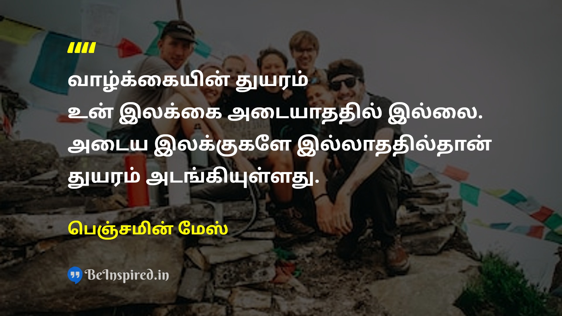 வாழ்க்கையின் துயரம் உன் இலக்கை அடையாததில் இல்லை. அடைய இலக்குகளே இல்லாததில்தான் துயரம் அடங்கியுள்ளது.
