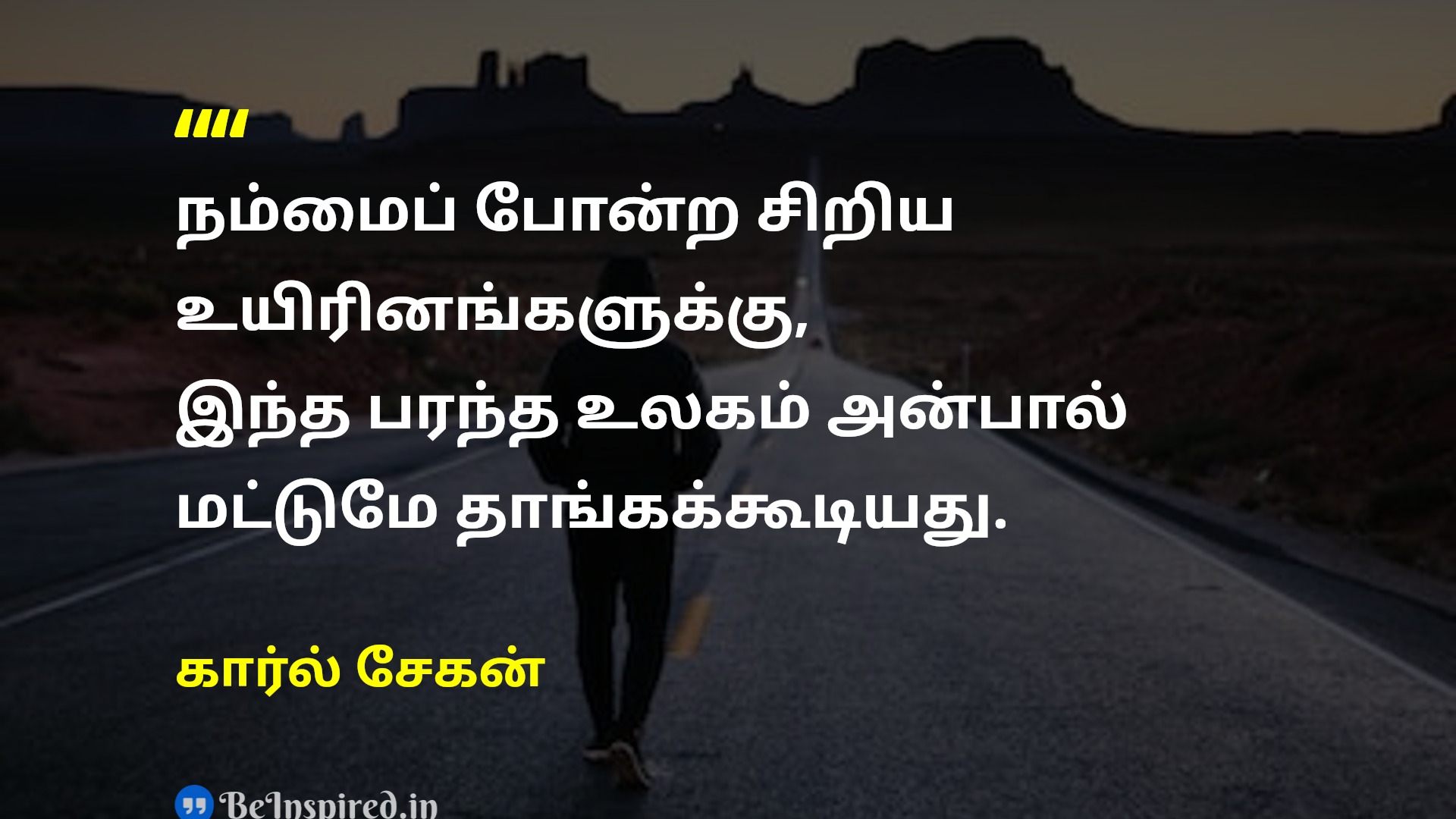 நம்மைப் போன்ற சிறிய உயிரினங்களுக்கு, இந்த பரந்த உலகம் அன்பால் மட்டுமே தாங்கக்கூடியது.