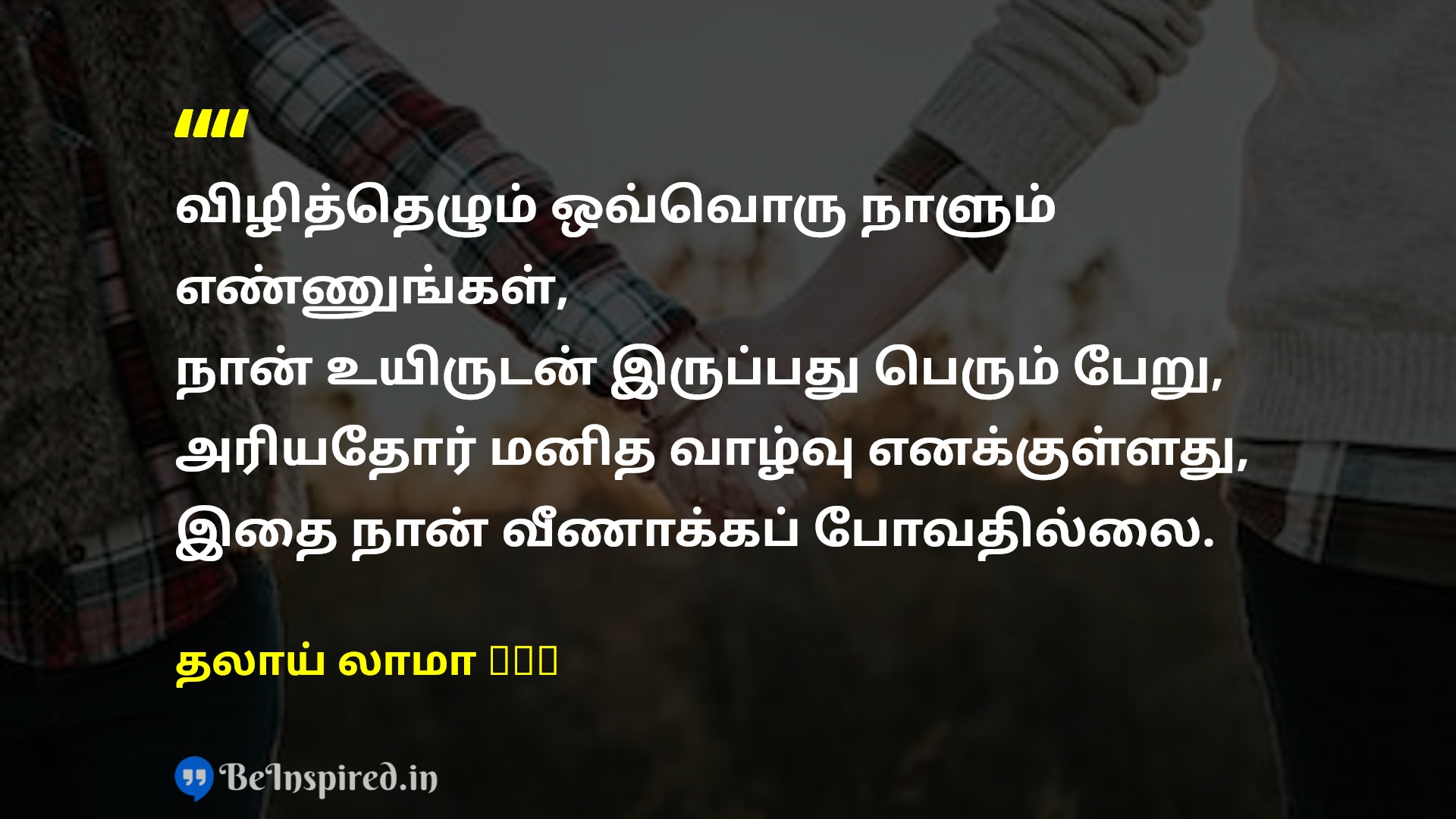 விழித்தெழும் ஒவ்வொரு நாளும் எண்ணுங்கள், நான் உயிருடன் இருப்பது பெரும் பேறு, அரியதோர் மனித வாழ்வு எனக்குள்ளது, இதை நான் வீணாக்கப் போவதில்லை.