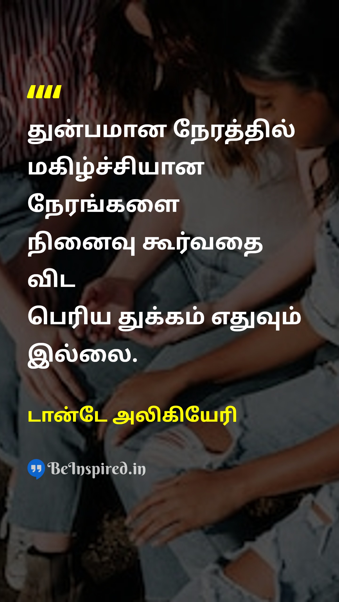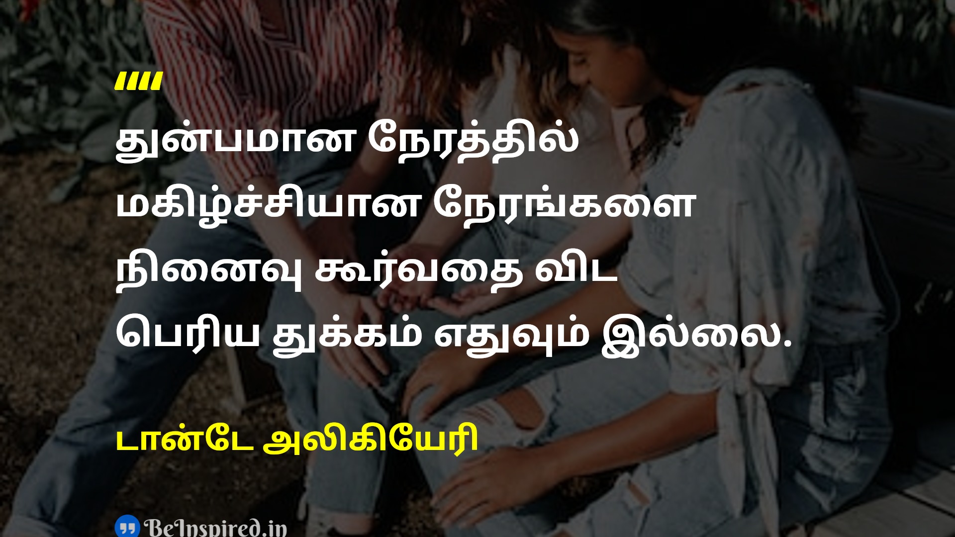 துன்பமான நேரத்தில் மகிழ்ச்சியான நேரங்களை நினைவு கூர்வதை விட பெரிய துக்கம் எதுவும் இல்லை.