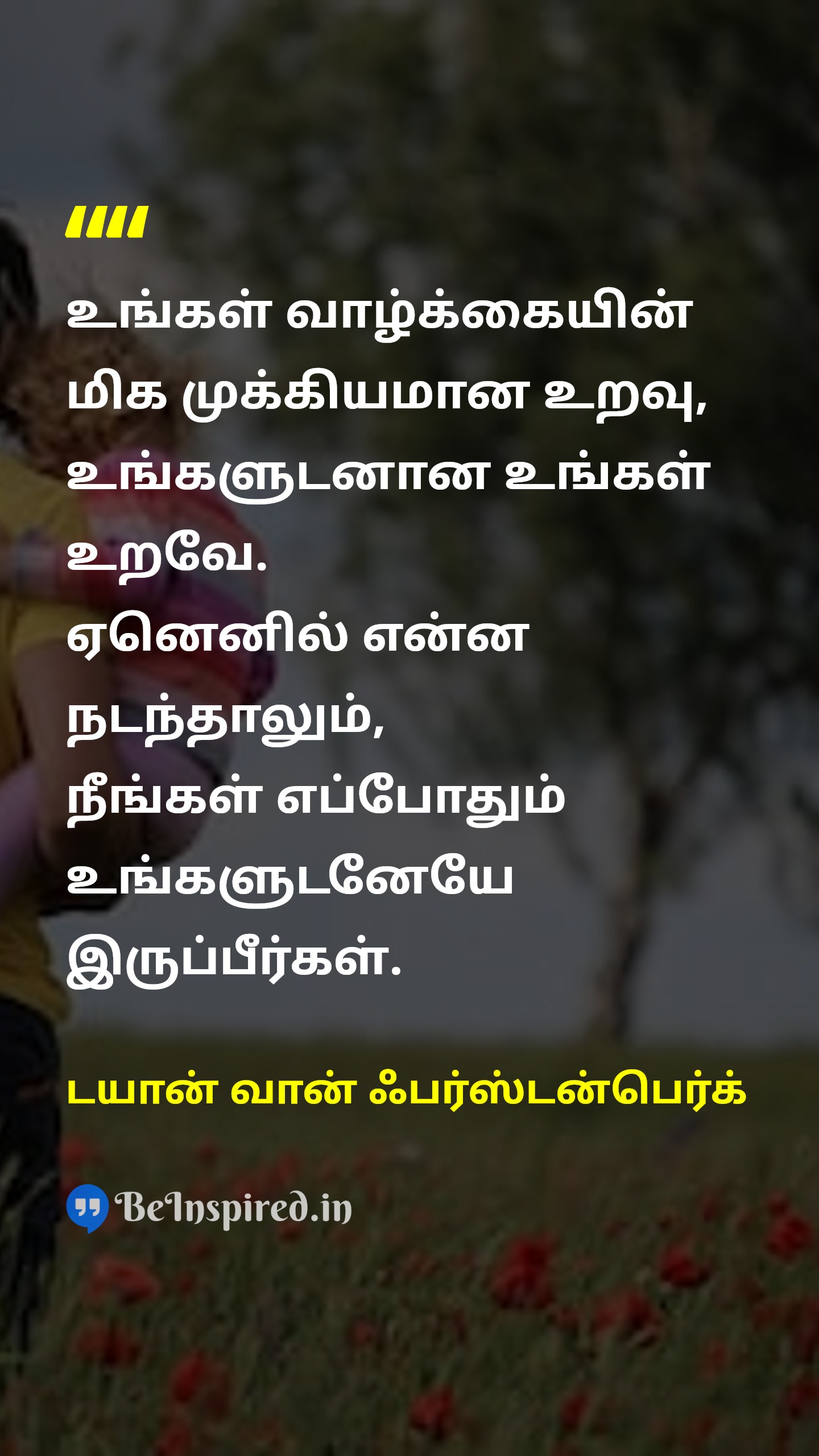 உங்கள் வாழ்க்கையின் மிக முக்கியமான உறவு, உங்களுடனான உங்கள் உறவே. ஏனெனில் என்ன நடந்தாலும், நீங்கள் எப்போதும் உங்களுடனேயே இருப்பீர்கள்.