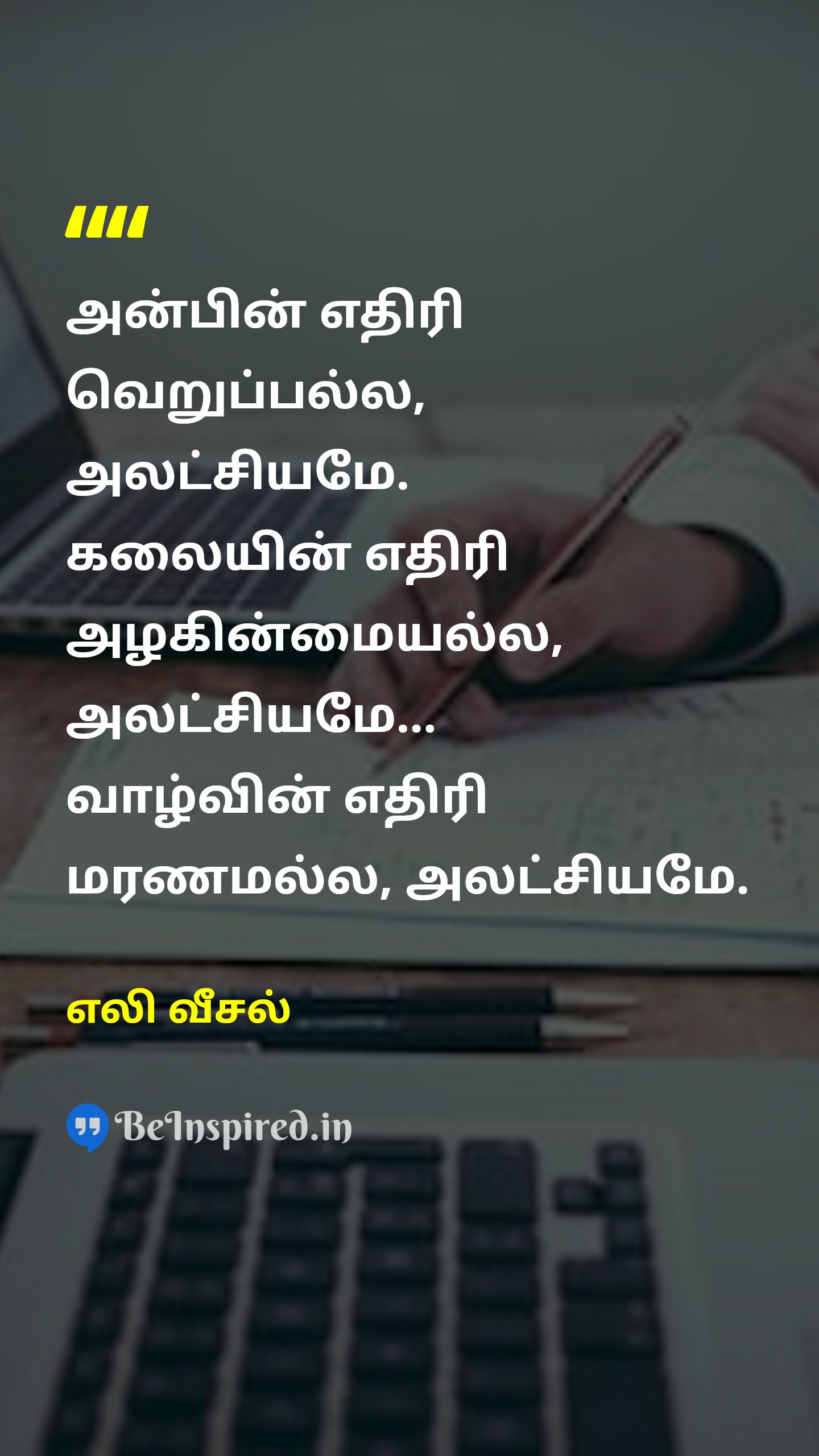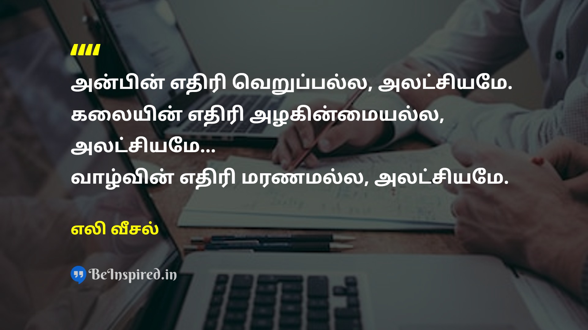 அன்பின் எதிரி வெறுப்பல்ல, அலட்சியமே. கலையின் எதிரி அழகின்மையல்ல, அலட்சியமே... வாழ்வின் எதிரி மரணமல்ல, அலட்சியமே.