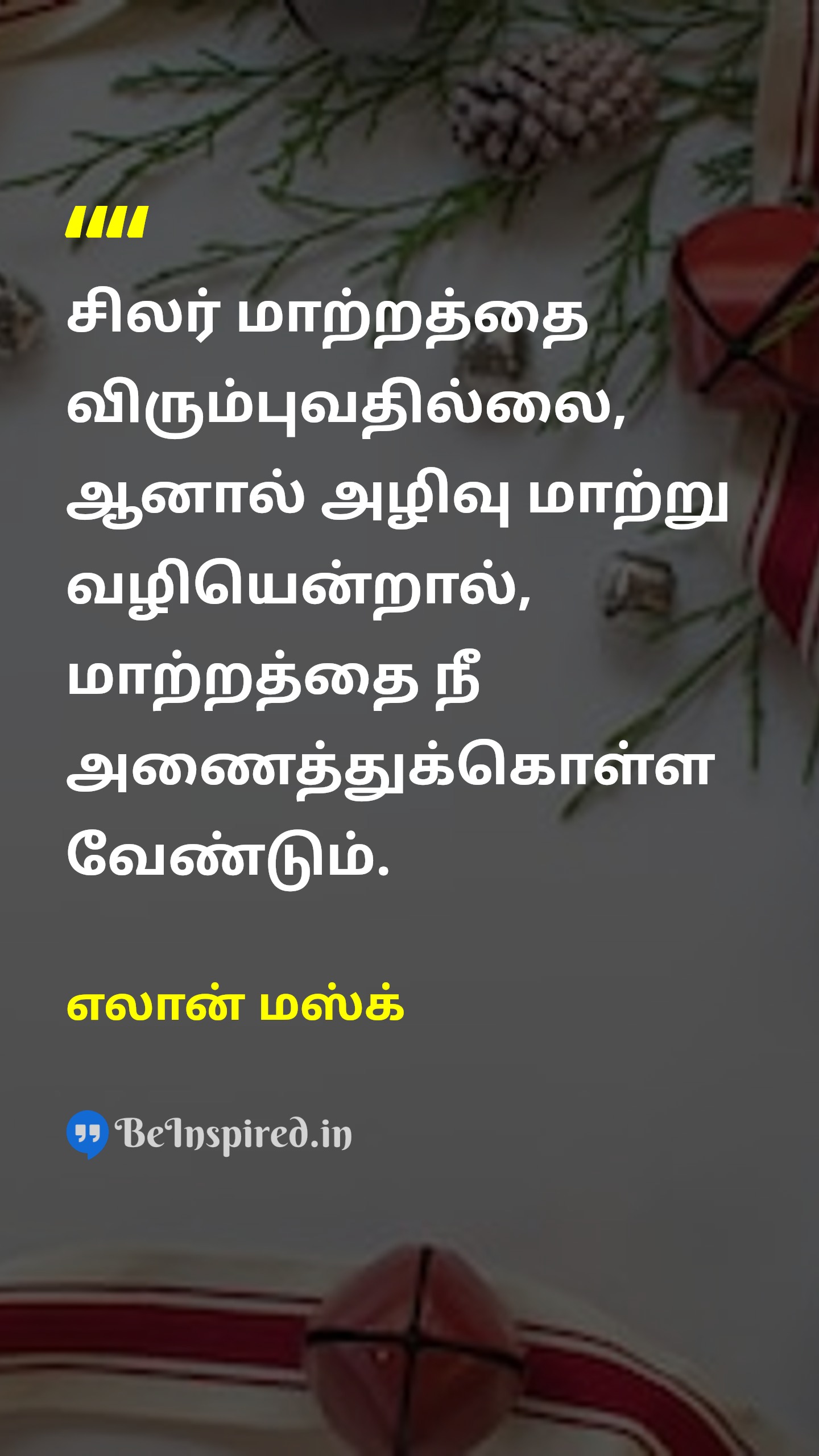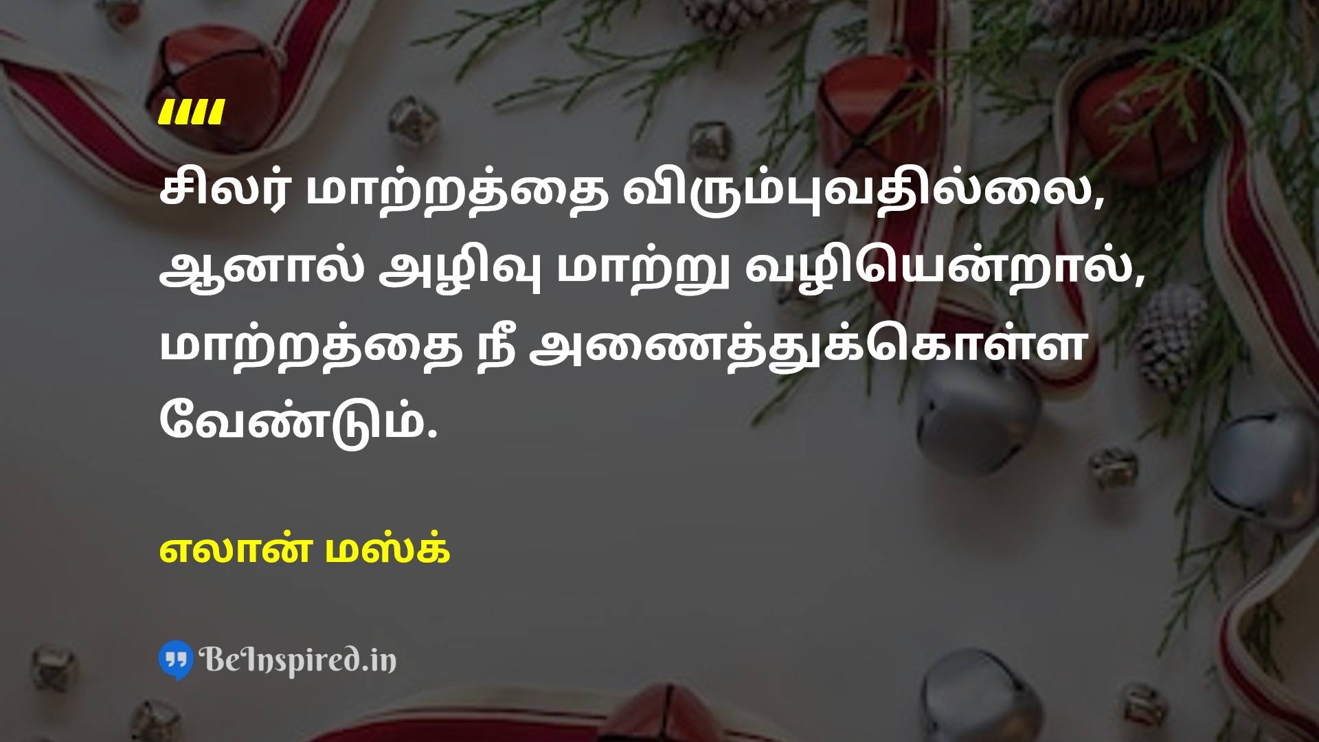 சிலர் மாற்றத்தை விரும்புவதில்லை, ஆனால் அழிவு மாற்று வழியென்றால், மாற்றத்தை நீ அணைத்துக்கொள்ள வேண்டும்.