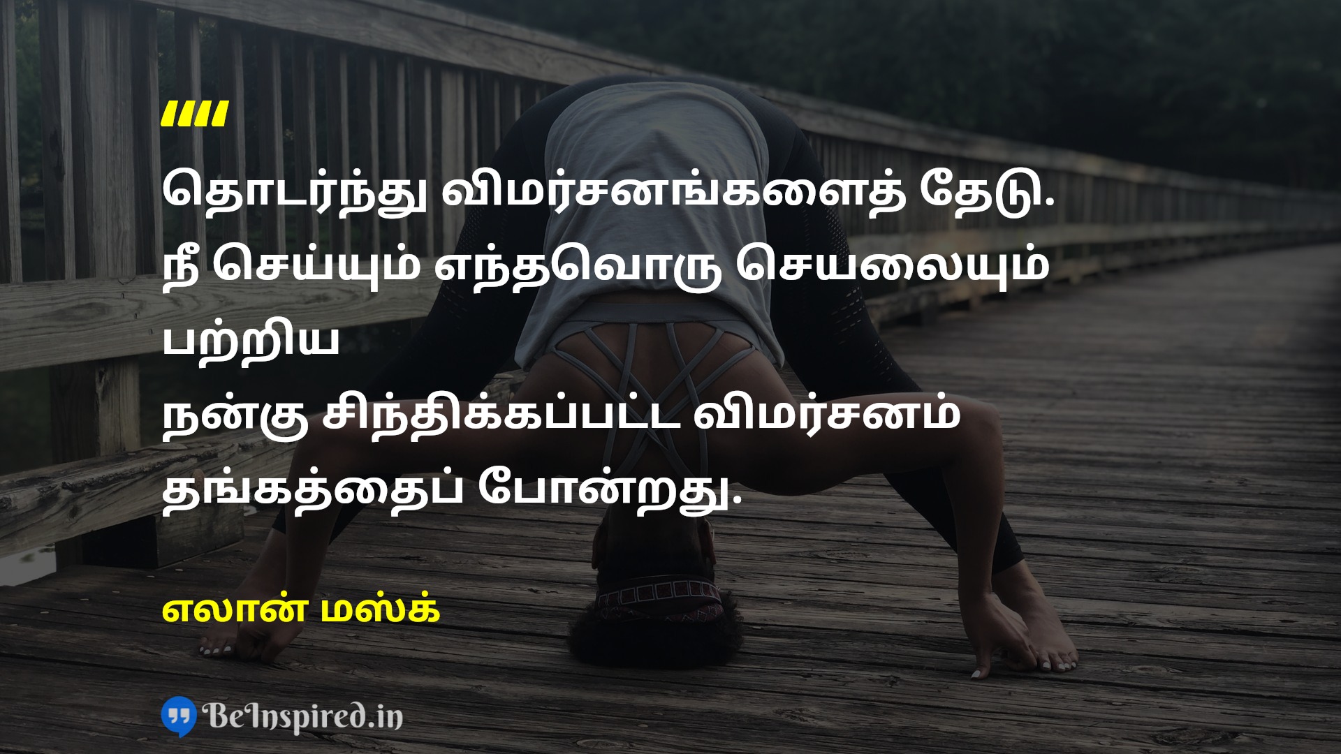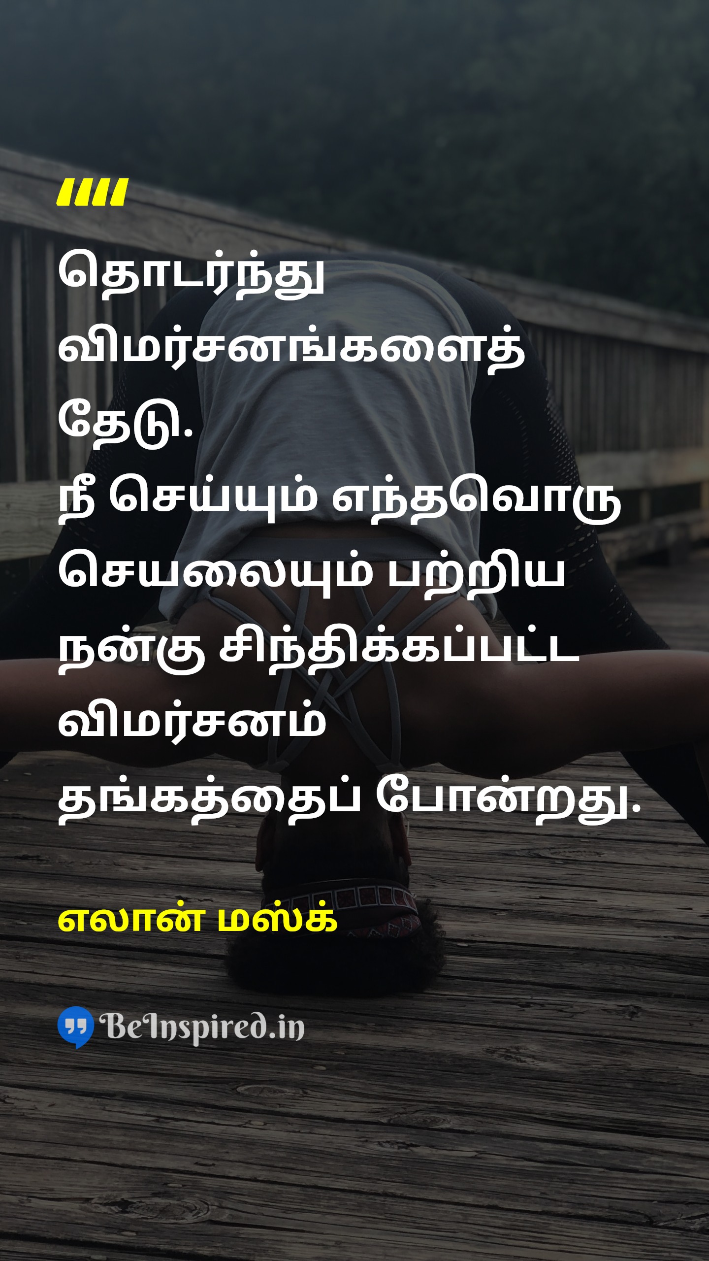 தொடர்ந்து விமர்சனங்களைத் தேடு. நீ செய்யும் எந்தவொரு செயலையும் பற்றிய நன்கு சிந்திக்கப்பட்ட விமர்சனம் தங்கத்தைப் போன்றது.