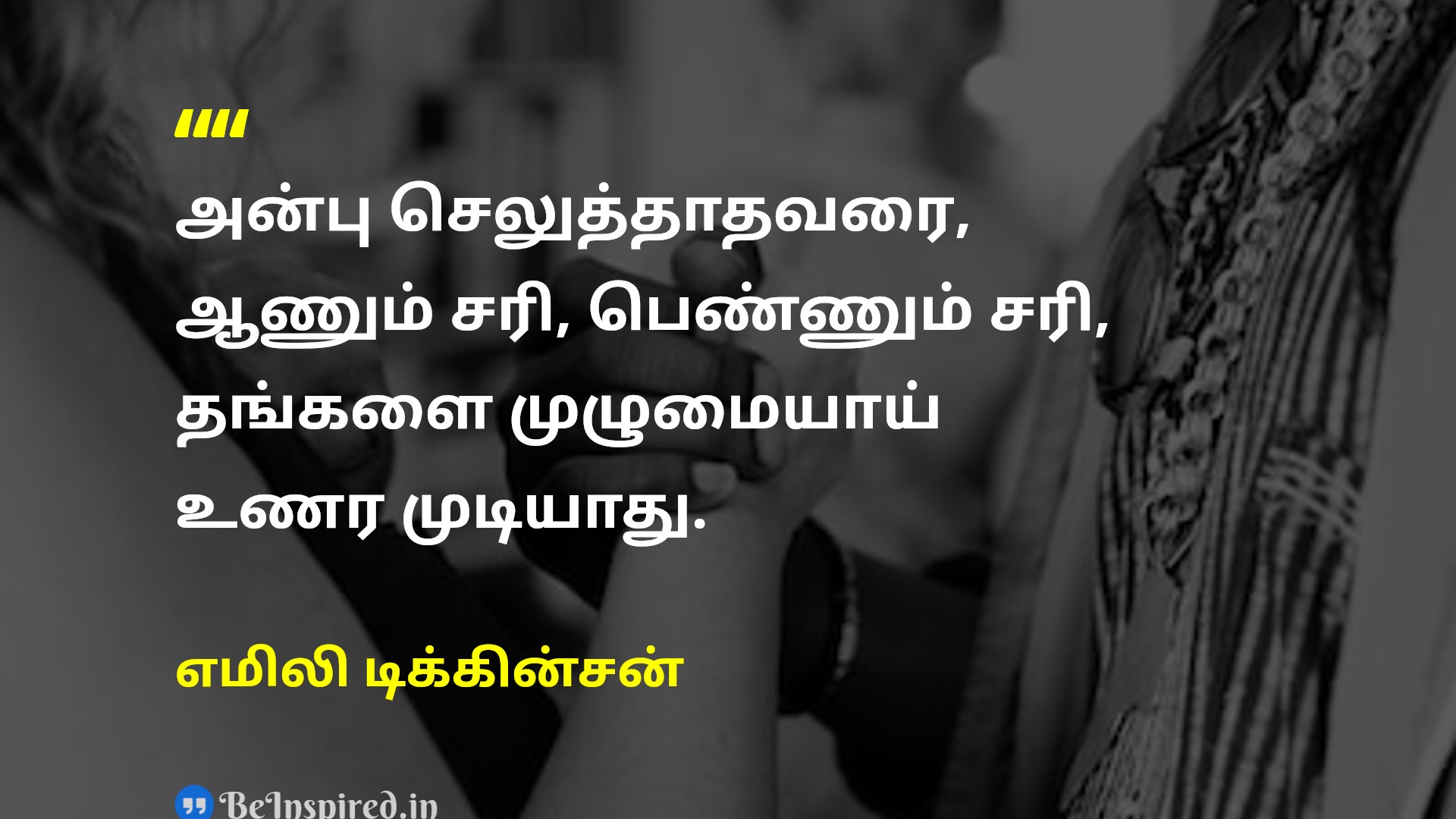 அன்பு செலுத்தாதவரை, ஆணும் சரி, பெண்ணும் சரி, தங்களை முழுமையாய் உணர முடியாது.