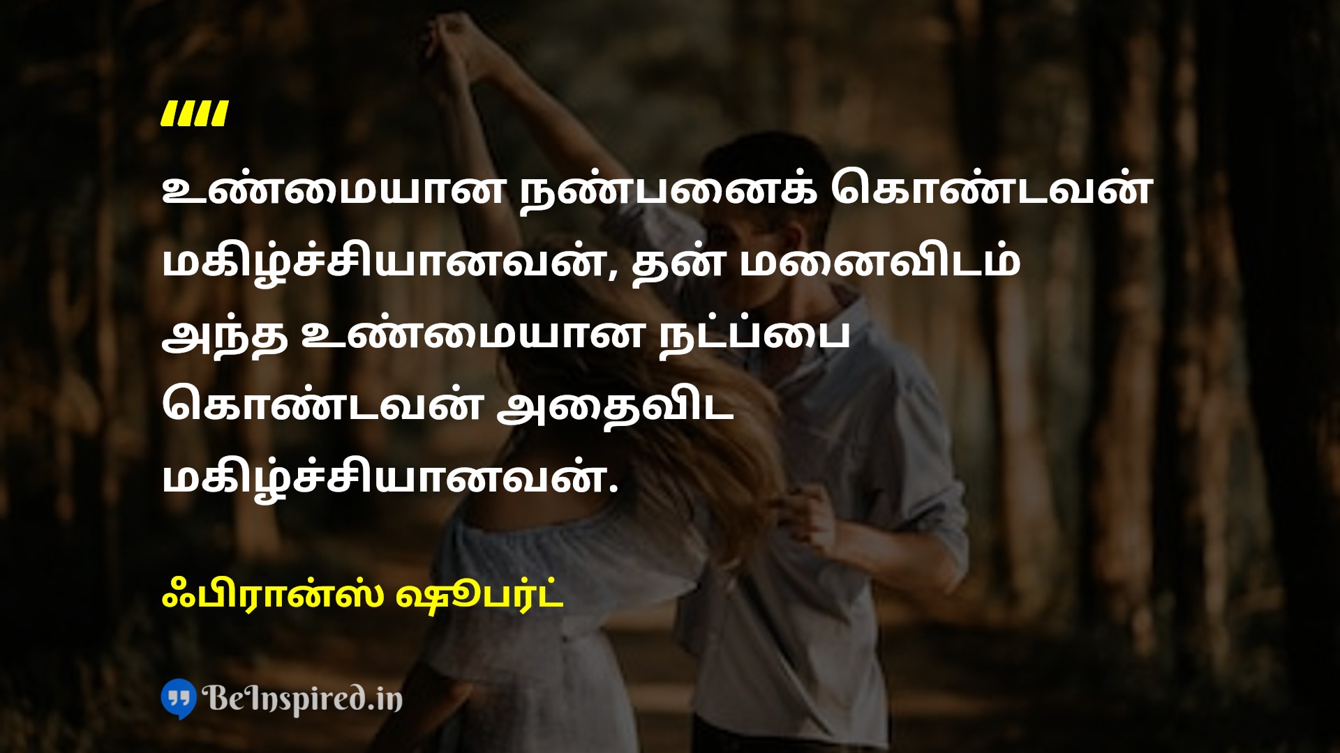 உண்மையான நண்பனைக் கொண்டவன் மகிழ்ச்சியானவன், தன் மனைவிடம் அந்த உண்மையான நட்ப்பை கொண்டவன் அதைவிட மகிழ்ச்சியானவன்.