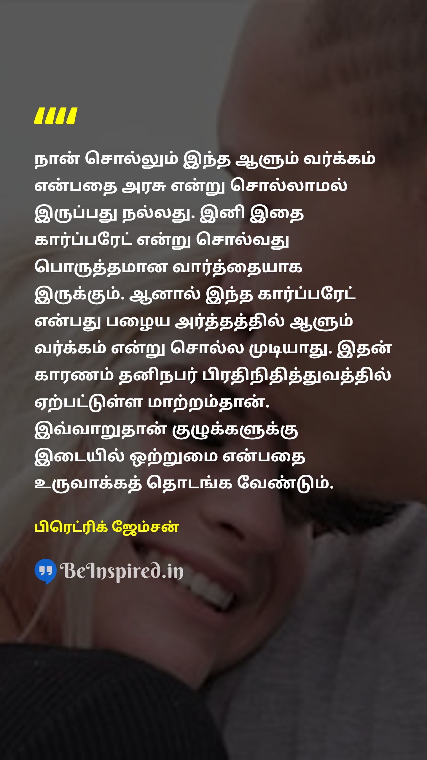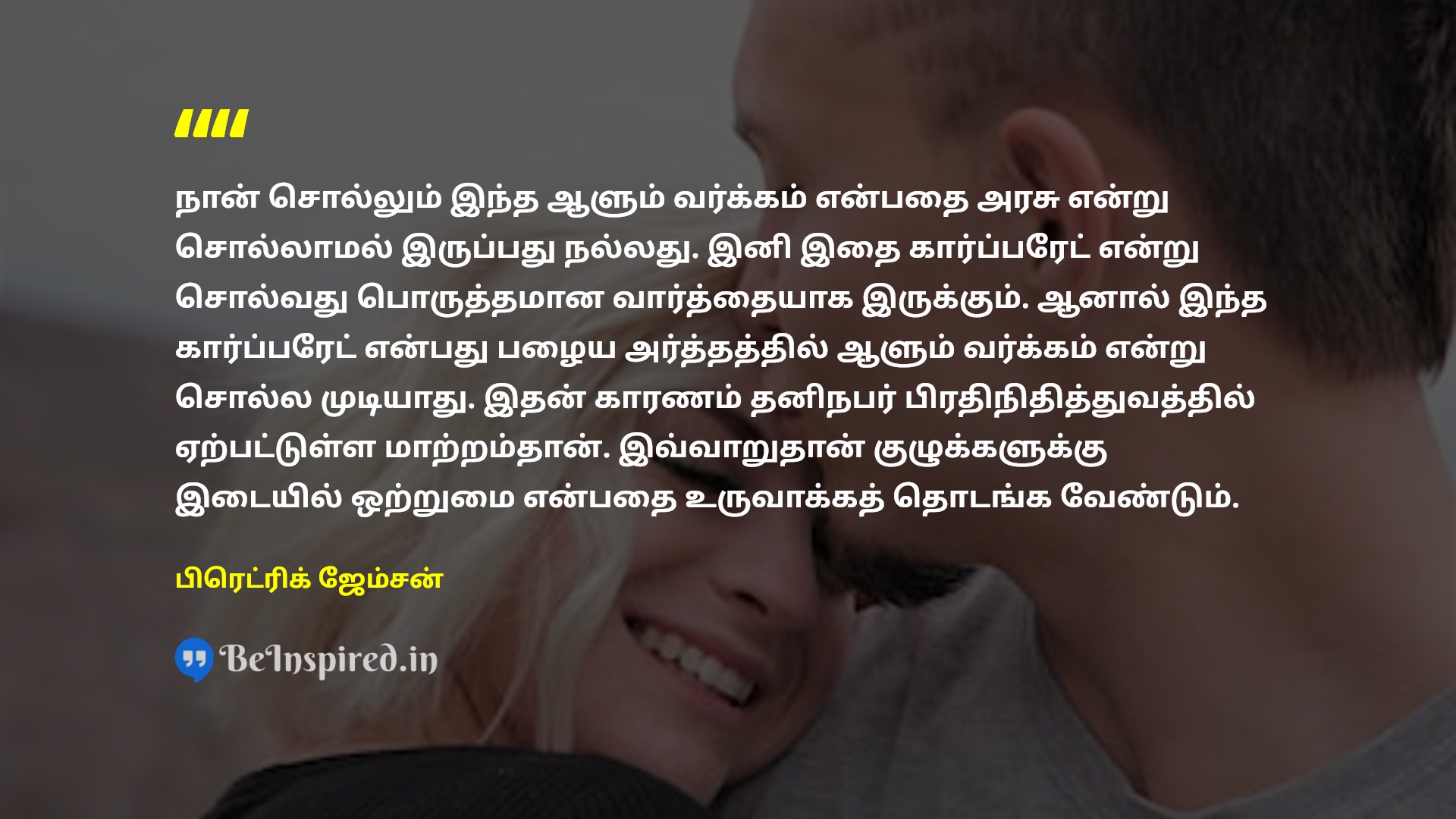 நான் சொல்லும் இந்த ஆளும் வர்க்கம் என்பதை அரசு என்று சொல்லாமல் இருப்பது நல்லது. இனி இதை கார்ப்பரேட் என்று சொல்வது பொருத்தமான வார்த்தையாக இருக்கும். ஆனால் இந்த கார்ப்பரேட் என்பது பழைய அர்த்தத்தில் ஆளும் வர்க்கம் என்று சொல்ல முடியாது. இதன் காரணம் தனிநபர் பிரதிநிதித்துவத்தில் ஏற்பட்டுள்ள மாற்றம்தான். இவ்வாறுதான் குழுக்களுக்கு இடையில் ஒற்றுமை என்பதை உருவாக்கத் தொடங்க வேண்டும்.