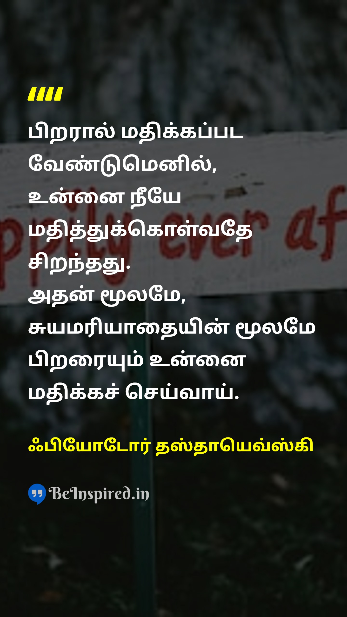 பிறரால் மதிக்கப்பட வேண்டுமெனில், உன்னை நீயே மதித்துக்கொள்வதே சிறந்தது. அதன் மூலமே, சுயமரியாதையின் மூலமே பிறரையும் உன்னை மதிக்கச் செய்வாய்.
