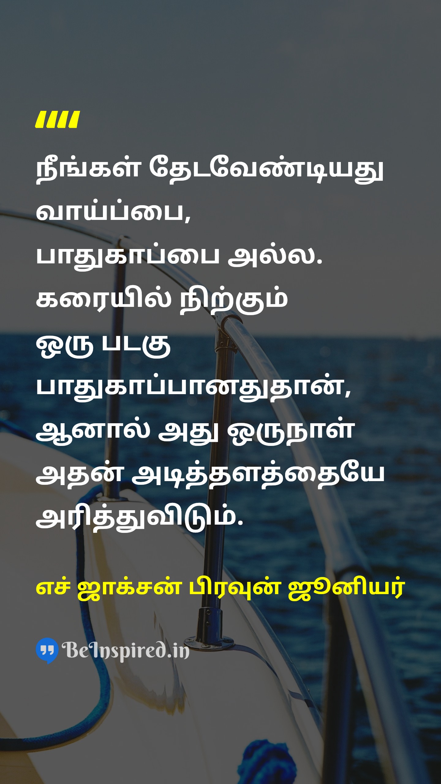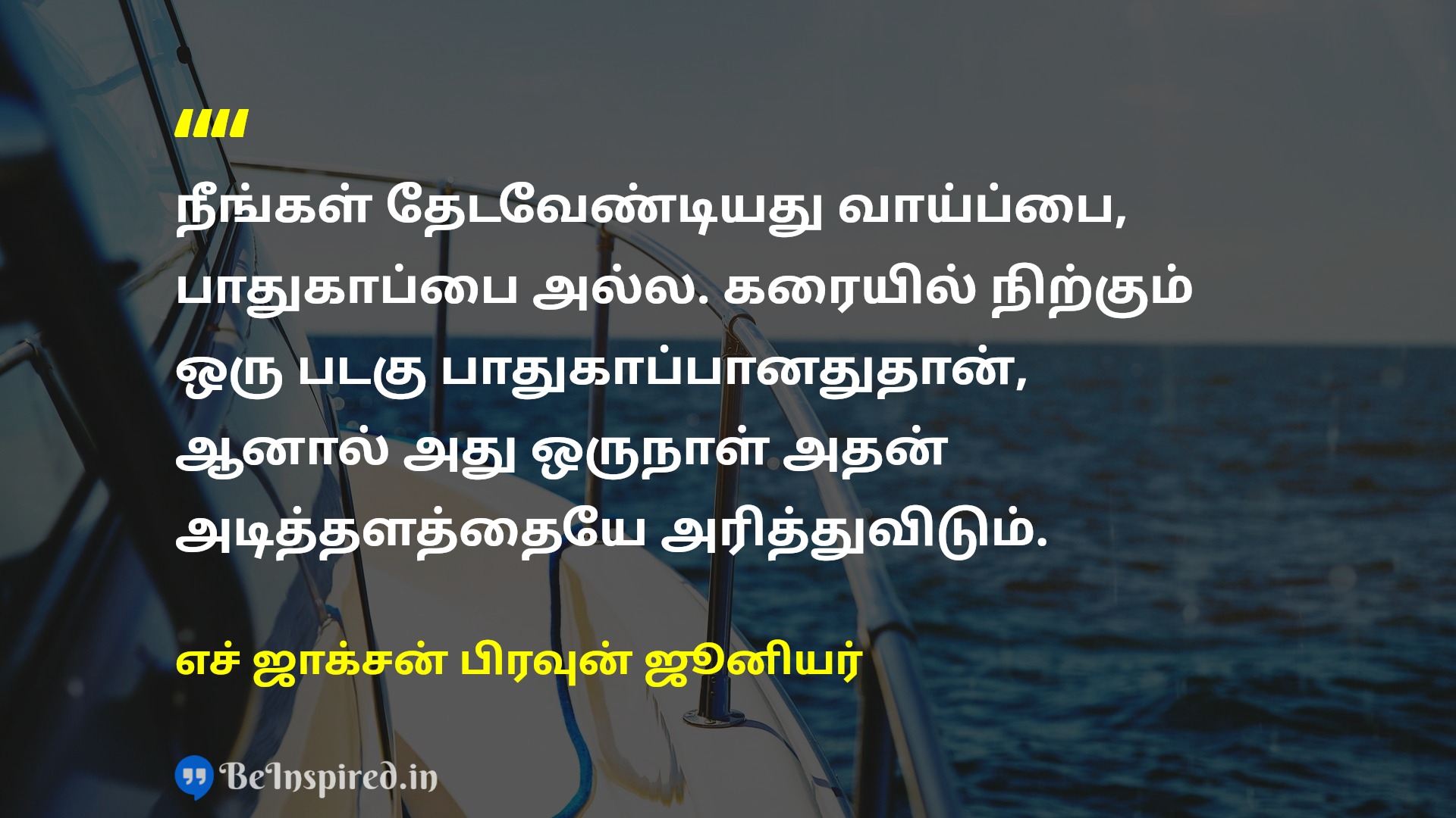 நீங்கள் தேடவேண்டியது வாய்ப்பை, பாதுகாப்பை அல்ல. கரையில் நிற்கும் ஒரு படகு பாதுகாப்பானதுதான், ஆனால் அது ஒருநாள் அதன் அடித்தளத்தையே அரித்துவிடும்.