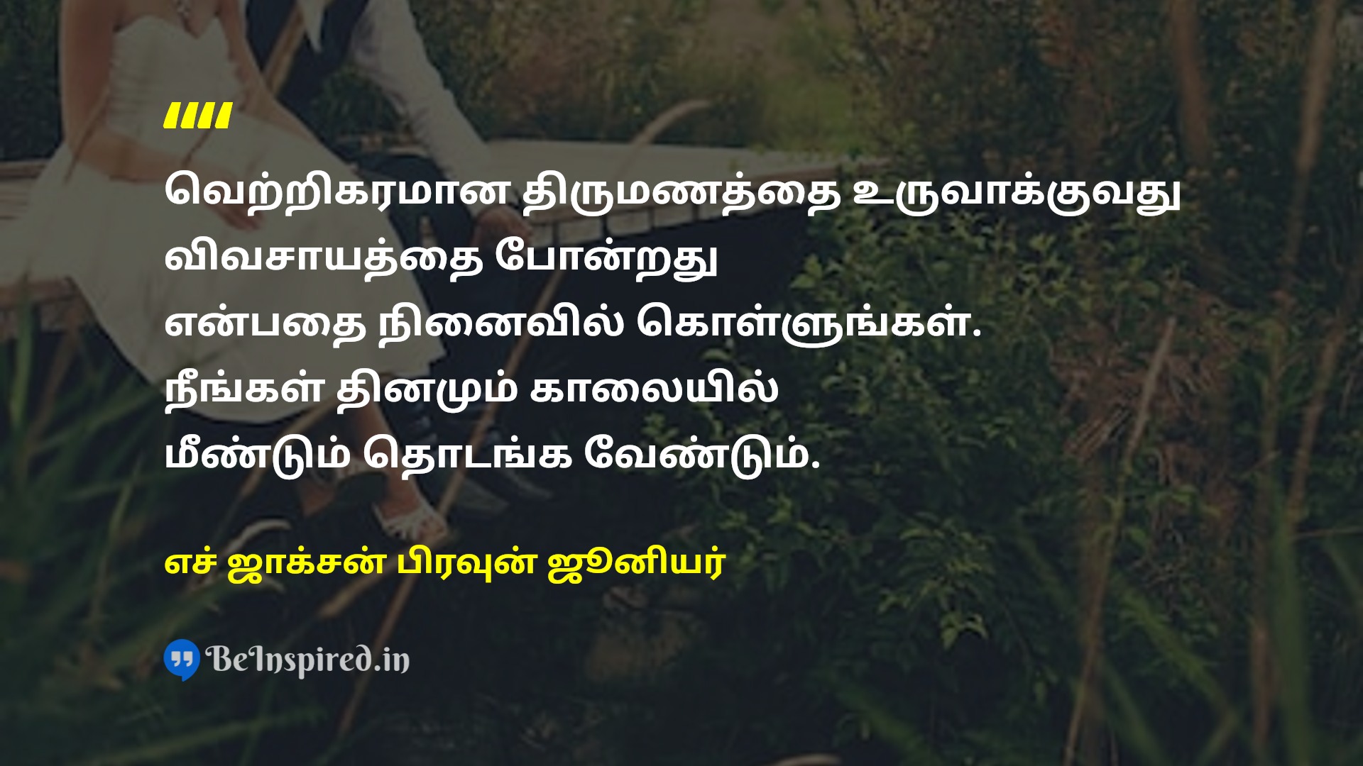 வெற்றிகரமான திருமணத்தை உருவாக்குவது விவசாயத்தை போன்றது என்பதை நினைவில் கொள்ளுங்கள். நீங்கள் தினமும் காலையில் மீண்டும் தொடங்க வேண்டும்.