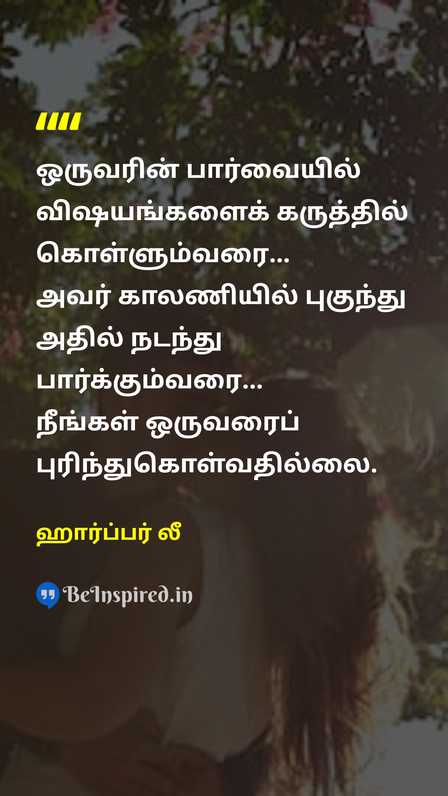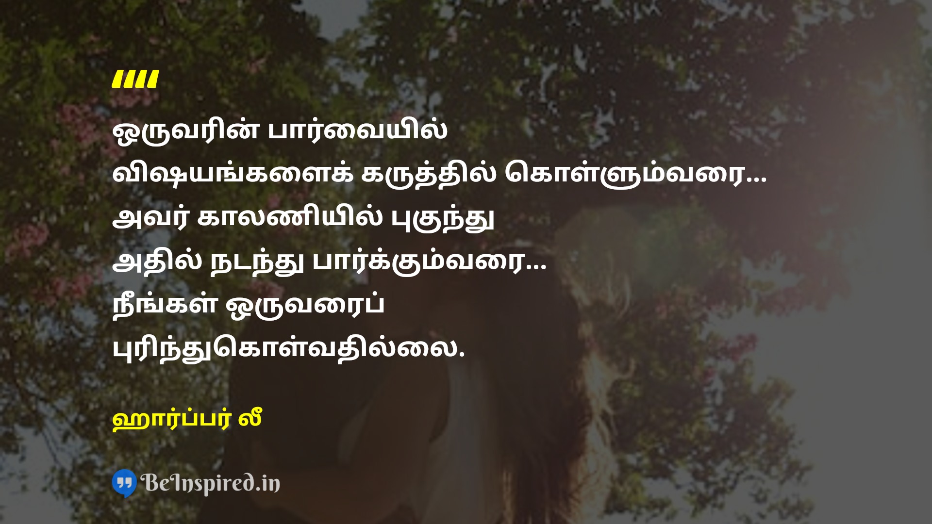ஒருவரின் பார்வையில் விஷயங்களைக் கருத்தில் கொள்ளும்வரை... அவர் காலணியில் புகுந்து அதில் நடந்து பார்க்கும்வரை... நீங்கள் ஒருவரைப் புரிந்துகொள்வதில்லை.