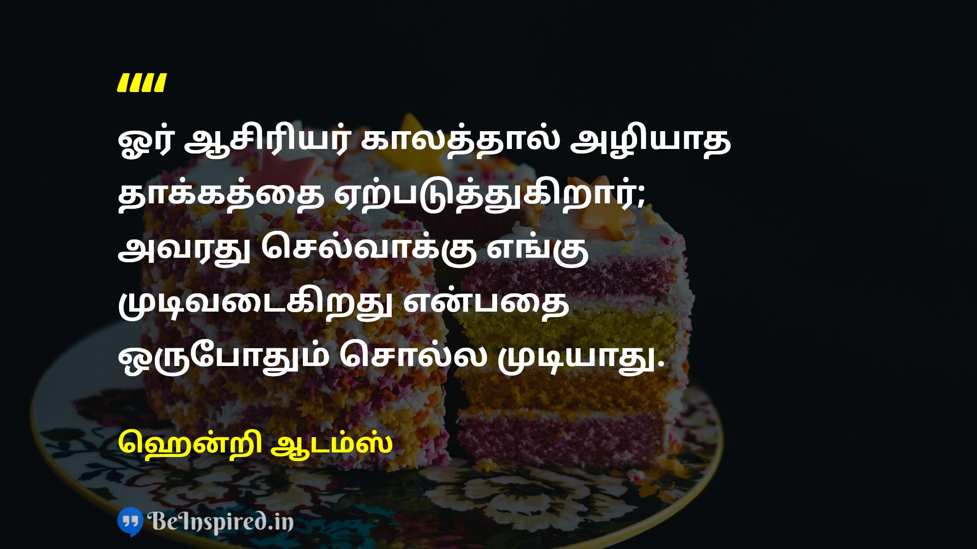 ஓர் ஆசிரியர் காலத்தால் அழியாத தாக்கத்தை ஏற்படுத்துகிறார்; அவரது செல்வாக்கு எங்கு முடிவடைகிறது என்பதை ஒருபோதும் சொல்ல முடியாது.