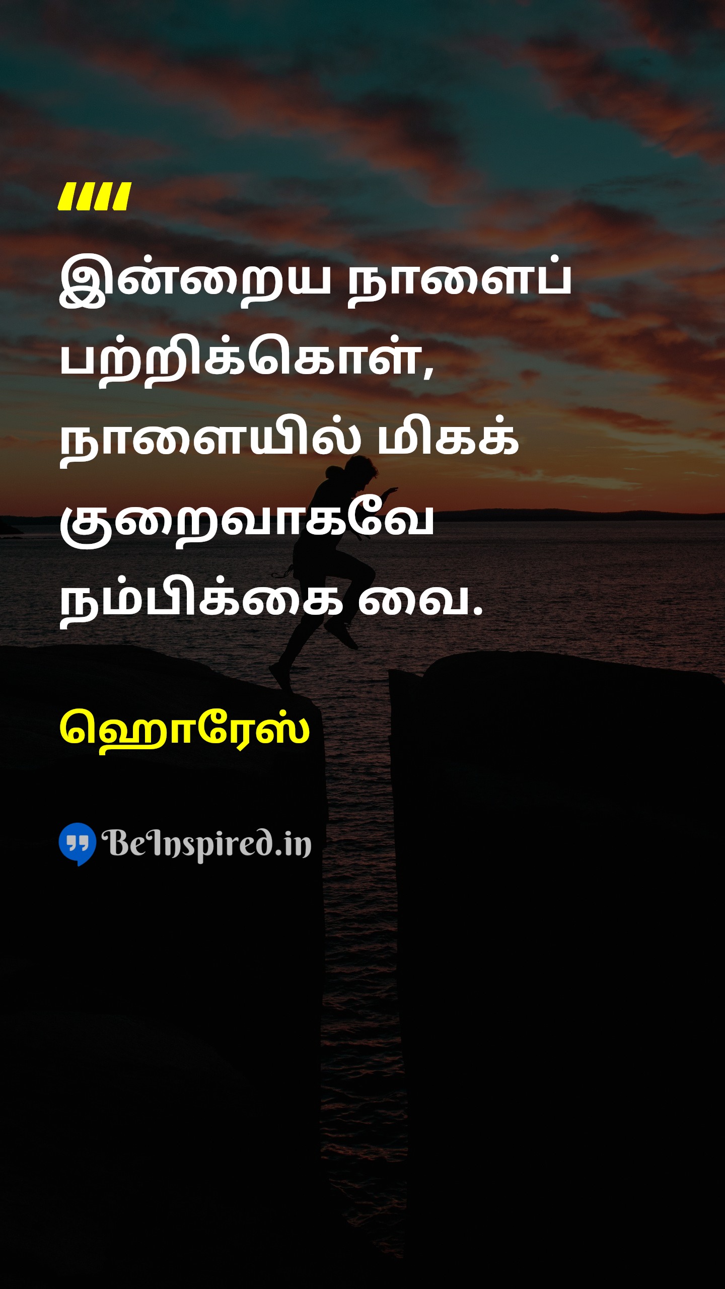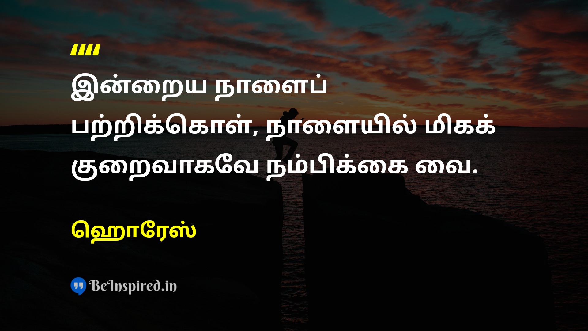 இன்றைய நாளைப் பற்றிக்கொள், நாளையில் மிகக் குறைவாகவே நம்பிக்கை வை.