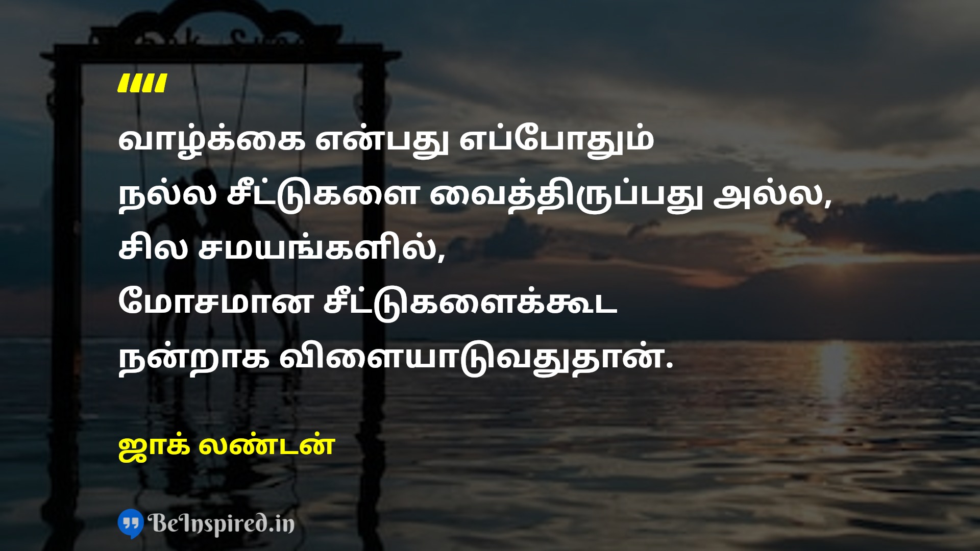 வாழ்க்கை என்பது எப்போதும் நல்ல சீட்டுகளை வைத்திருப்பது அல்ல, சில சமயங்களில், மோசமான சீட்டுகளைக்கூட நன்றாக விளையாடுவதுதான்.