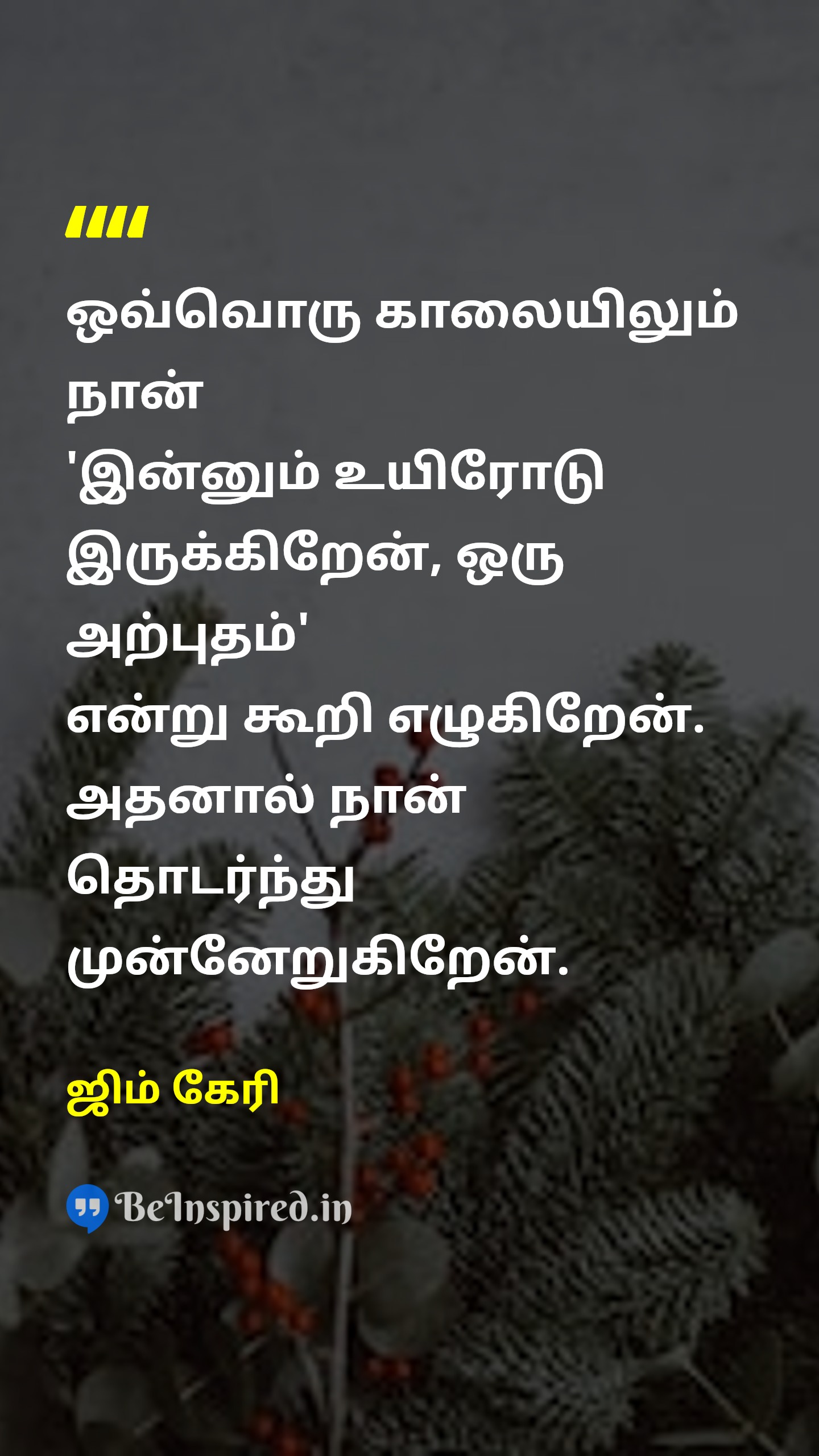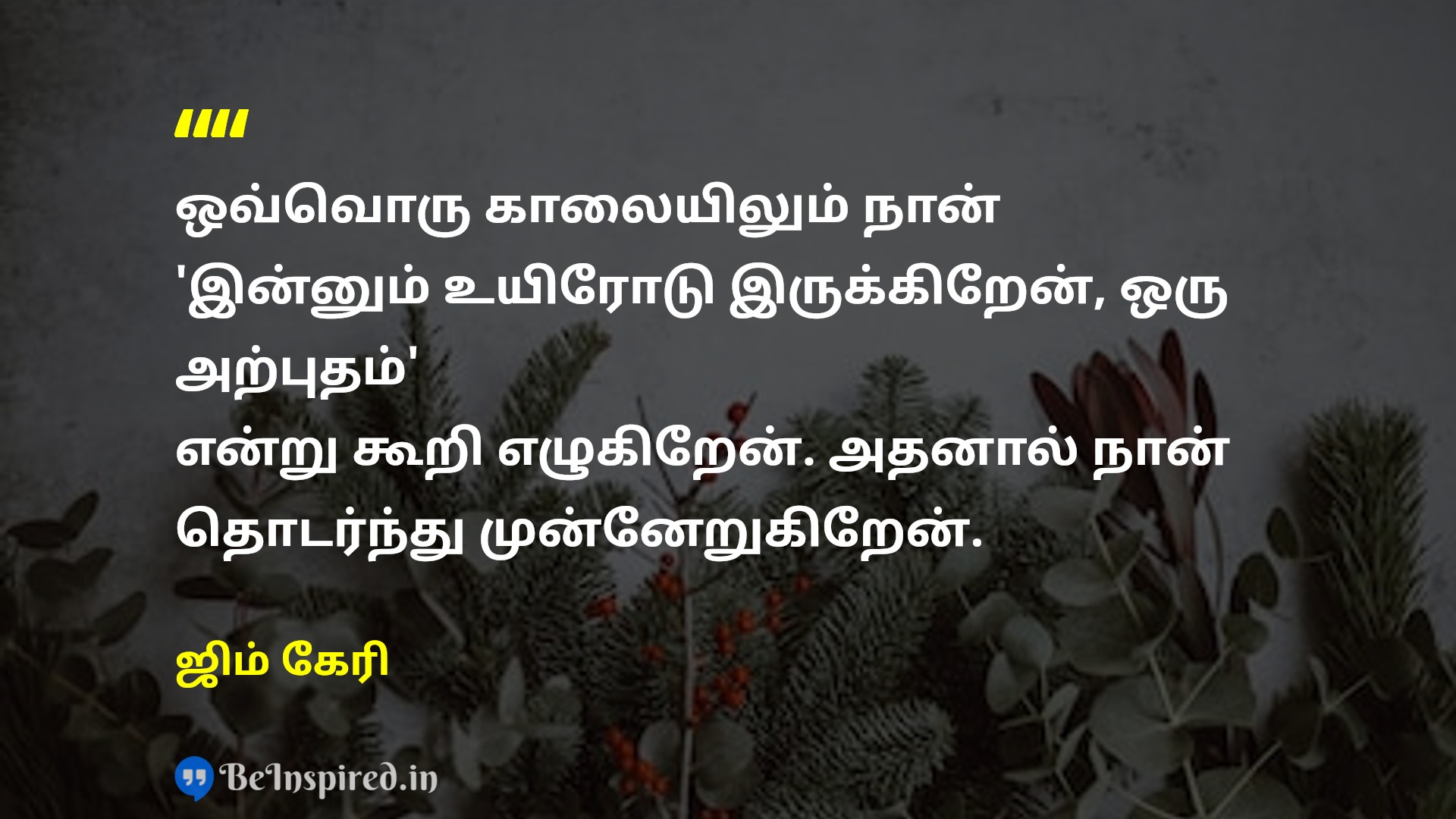 ஒவ்வொரு காலையிலும் நான் 'இன்னும் உயிரோடு இருக்கிறேன், ஒரு அற்புதம்' என்று கூறி எழுகிறேன். அதனால் நான் தொடர்ந்து முன்னேறுகிறேன்.
