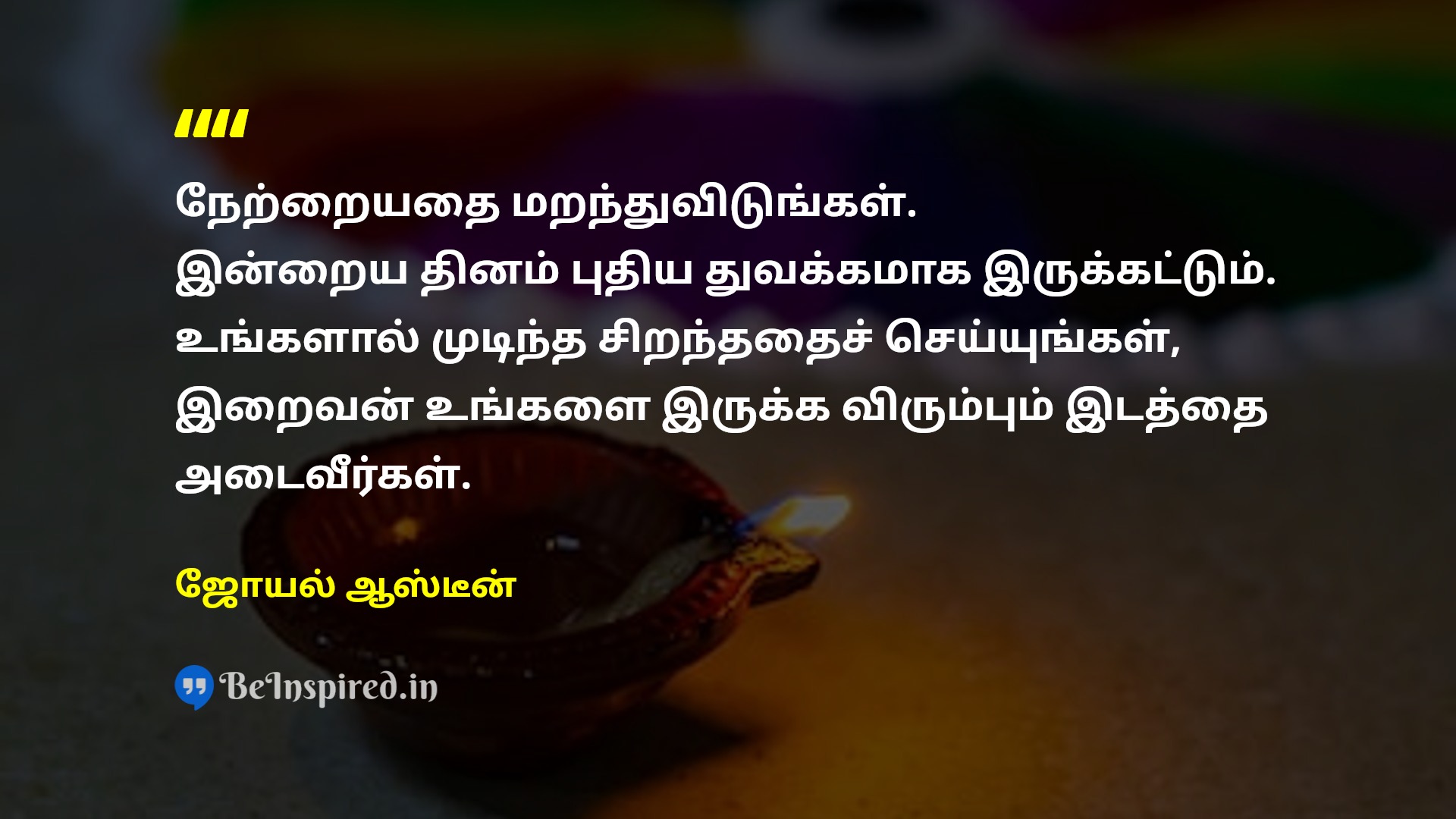 நேற்றையதை மறந்துவிடுங்கள். இன்றைய தினம் புதிய துவக்கமாக இருக்கட்டும். உங்களால் முடிந்த சிறந்ததைச் செய்யுங்கள், இறைவன் உங்களை இருக்க விரும்பும் இடத்தை அடைவீர்கள்.