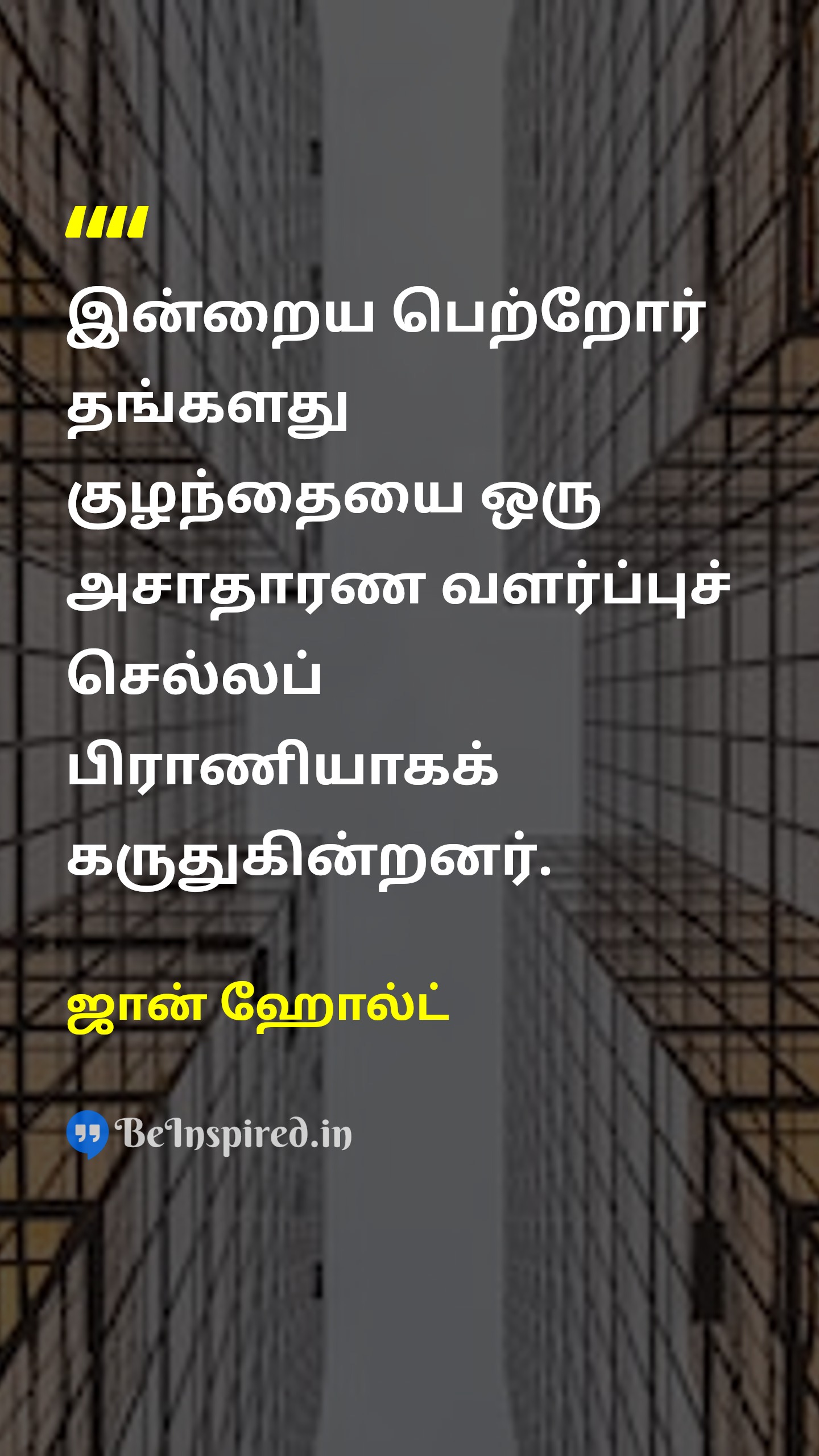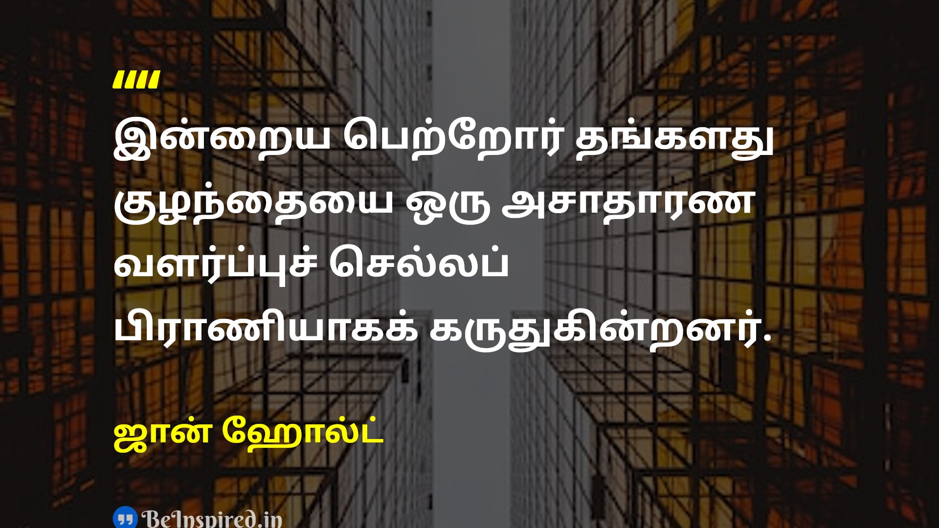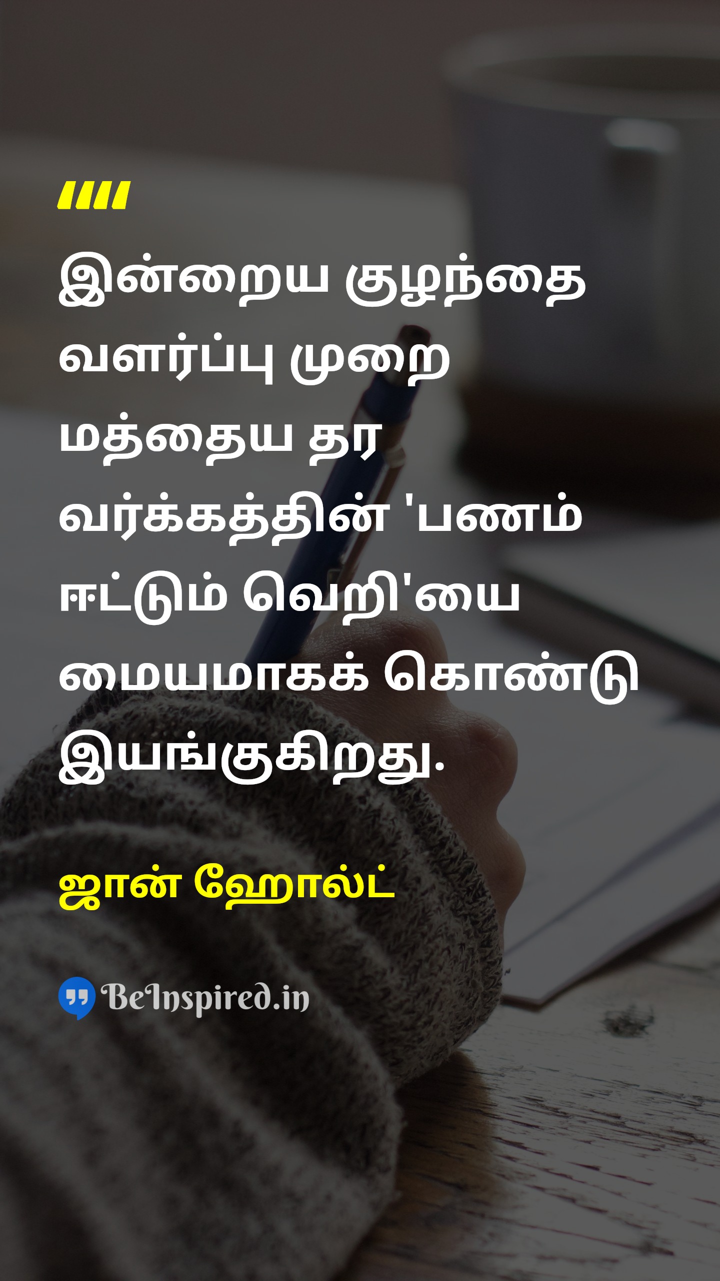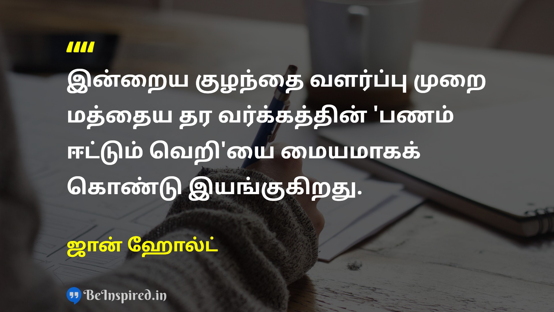 இன்றைய குழந்தை வளர்ப்பு முறை மத்தைய தர வர்க்கத்தின் 'பணம் ஈட்டும் வெறி'யை மையமாகக் கொண்டு இயங்குகிறது.